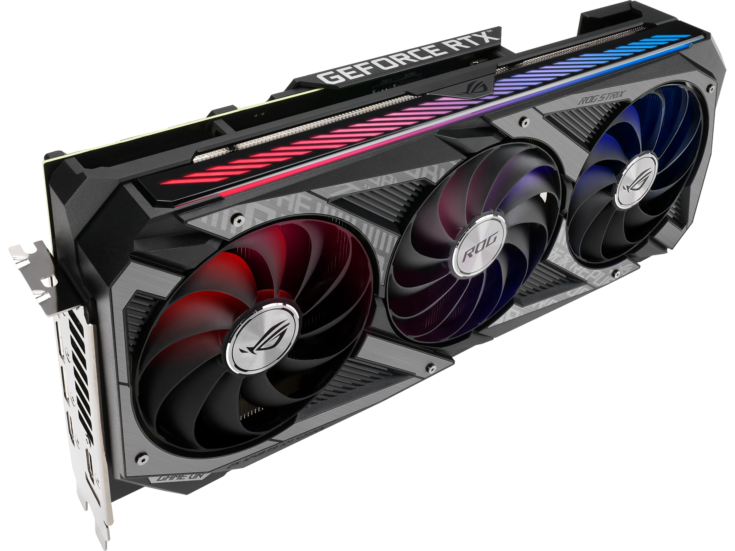 Fra topp til bunn er ASUS GeForce RTX 3080 ROG Strix blitt forbedret radikalt for å imøtekomme de imponerende nye Ampere-brikkene fra NVIDIA og for å levere neste bølge av innovasjon innen spillytelse til markedet. En frisk design og mer metall omgir en gruppe aksialvifter. Forrige generasjons ensartede viftelayout er blitt erstattet av et nytt rotasjonsoppsett og spesialiserte roller for midtvifter og hjelpevifter. Under bladene finnes det en større, mer imponerende kjøleribbe som er klar for de mest krevende varmebelastningene. Kretskortet har noen nye triks i ermet, og til og med bakplaten har fått noen endringer som øker ytelsen. Du har ventet på det siste og beste innen GPU-design – og her er det.
