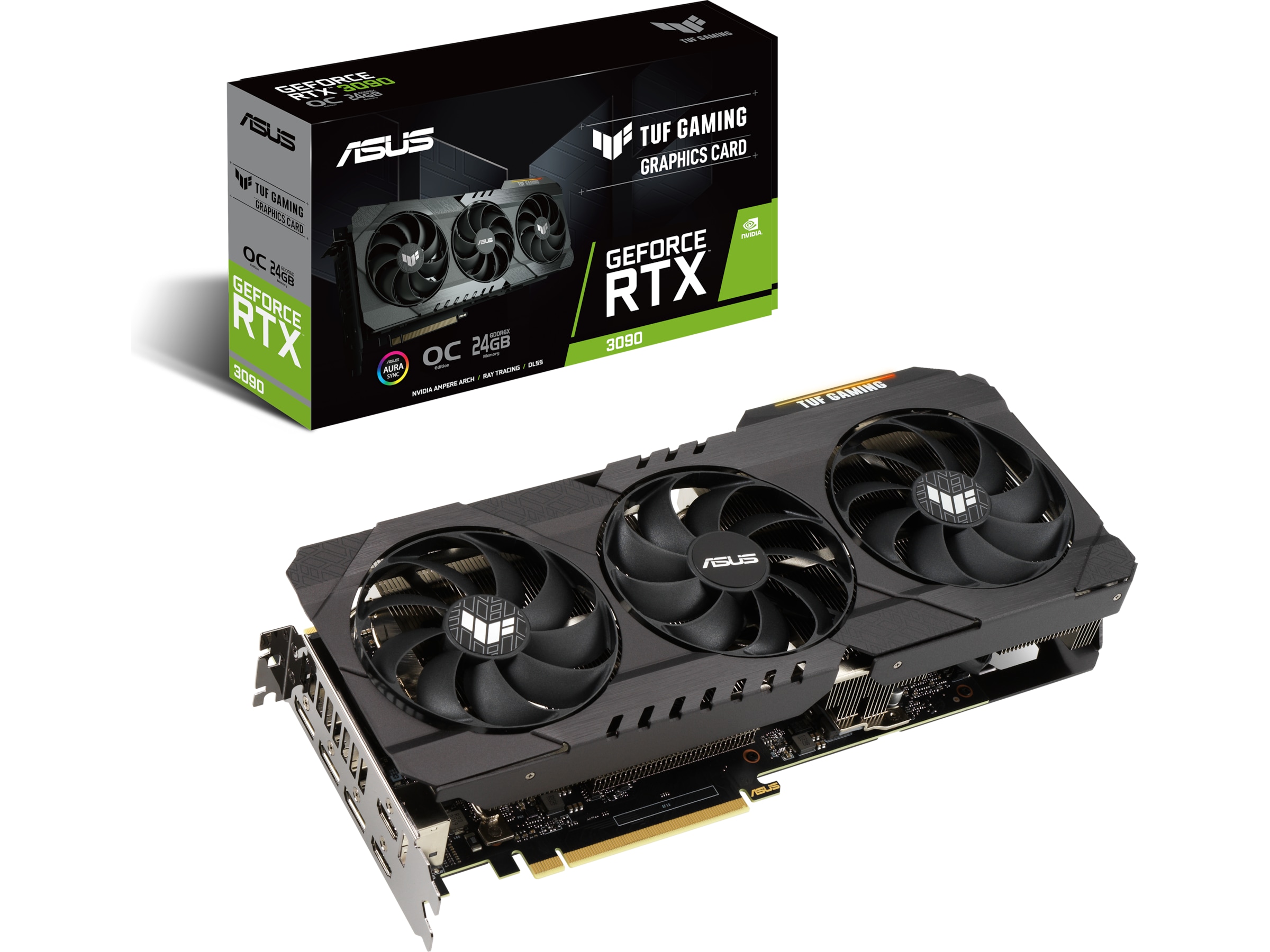 ASUS GeForce RTX 3090 TUF GAMING er blitt slanket ned og bygd opp igjen for å levere mer robust kraft og kjøling. Et nytt all-metal shroud (deksel), plass til tre kraftige axial-tech vifter som bruker slitesterke doble kulelagre. (Dual Ball Fan Bearings) Vifterotasjonen er optimalisert for å redusere turbulensen, og en stoppmodus stopper alle tre viftene ved lave temperaturer. Under panseret holder uavhengige heatsinks skjermkortet og minnet varmen under kontroll. Ytterligere funksjoner, inkludert TUF-komponenter, Auto-Extreme Technology, en ny GPU-brakett og en bakplateventil gjør TUF til et skikkelig kraftverk. For byggere som ønsker en ny «klassiker», er dette det perfekte skjermkortet.