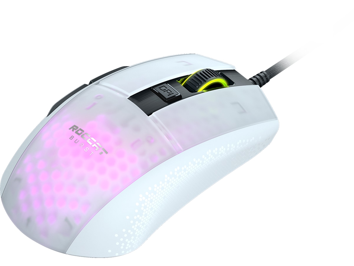 Hils på den ekstremt lette optiske musen for proffgaming, ROCCAT® Burst. Den er konstruert fra bunnen av med en symmetrisk og ergonomisk form som føles bedre enn andre mus allerede idet du tar på den for første gang. Det gjennomsiktige skallet med cellemønster muliggjør en ekstrem lett vekt på 68 g. Med Titan Switch Optical, varmebehandlet glid og en PhantomFlexTM-kabel for høytytende spill uten begrensninger.