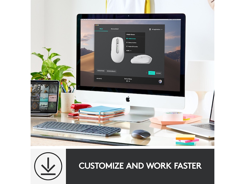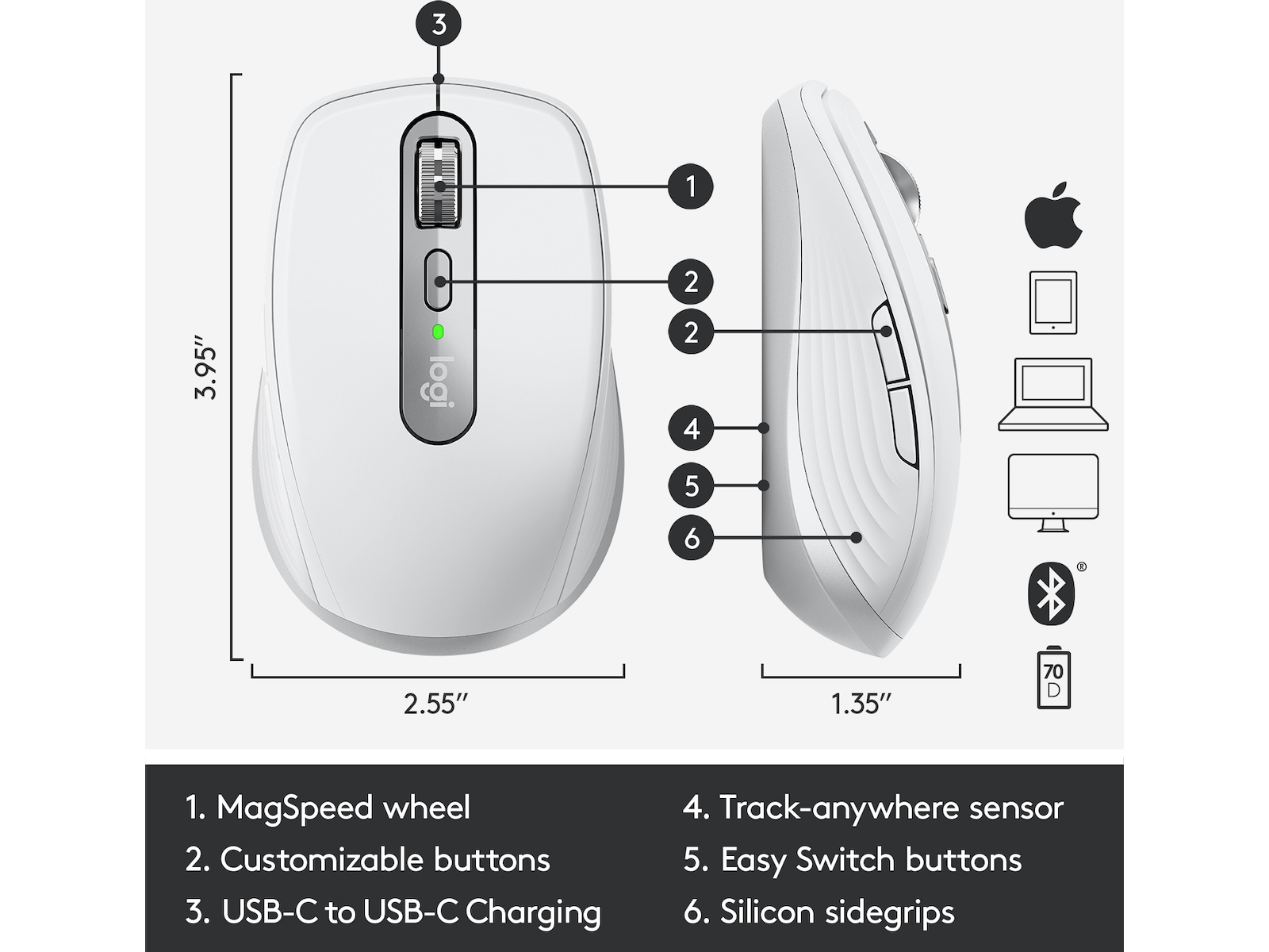 Logitech Flow, Silikongrep, Programmerbare knapper, MagSpeed-hjul, Logitech Darkfield Laser Tracking