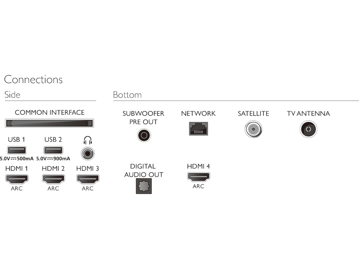 Andre egenskaper Bowers & Wilkins Sound, Dolby Bass Enhancement, Lydreturkanal (ARC), Dolby Volume Leveler, Auto Volume Leveller (AVL), Clear Dialogue, Nattmodus, AI Sound, Bass Enhancer