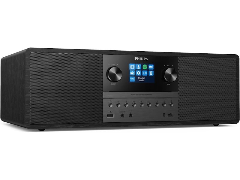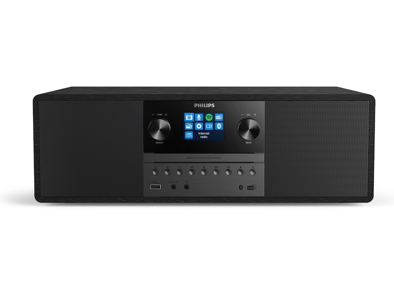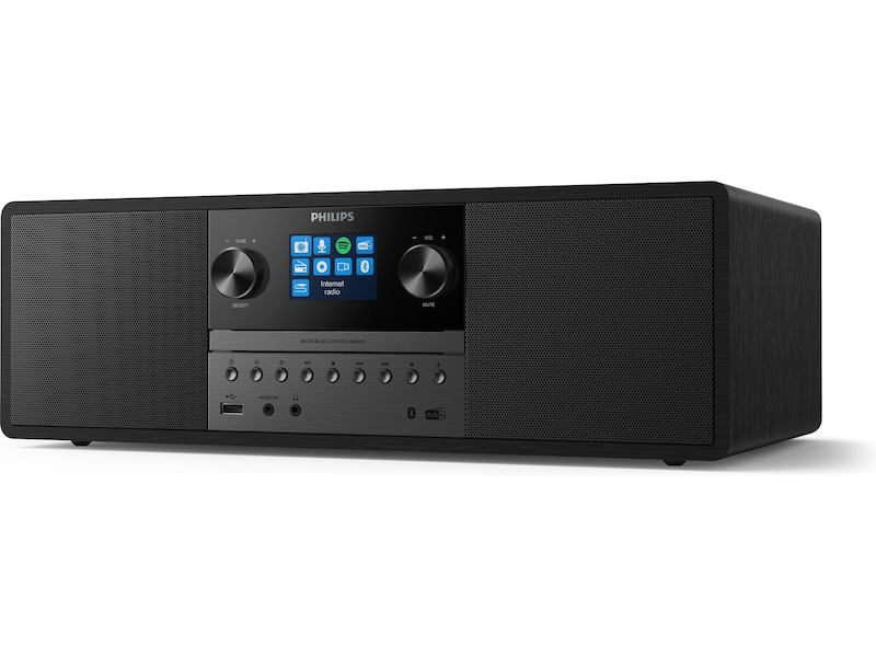 Med Internett-radio, Spotify Connect, Bluetooth og en CD-spiller kan dette kompakte alt-i-ett-mikrosystemet spille av alt sammen. Du kan også koble til andre kilder via lydinngang eller USB. Gled deg over fyldigere lyd fra et system som passer inn i nesten alle rom