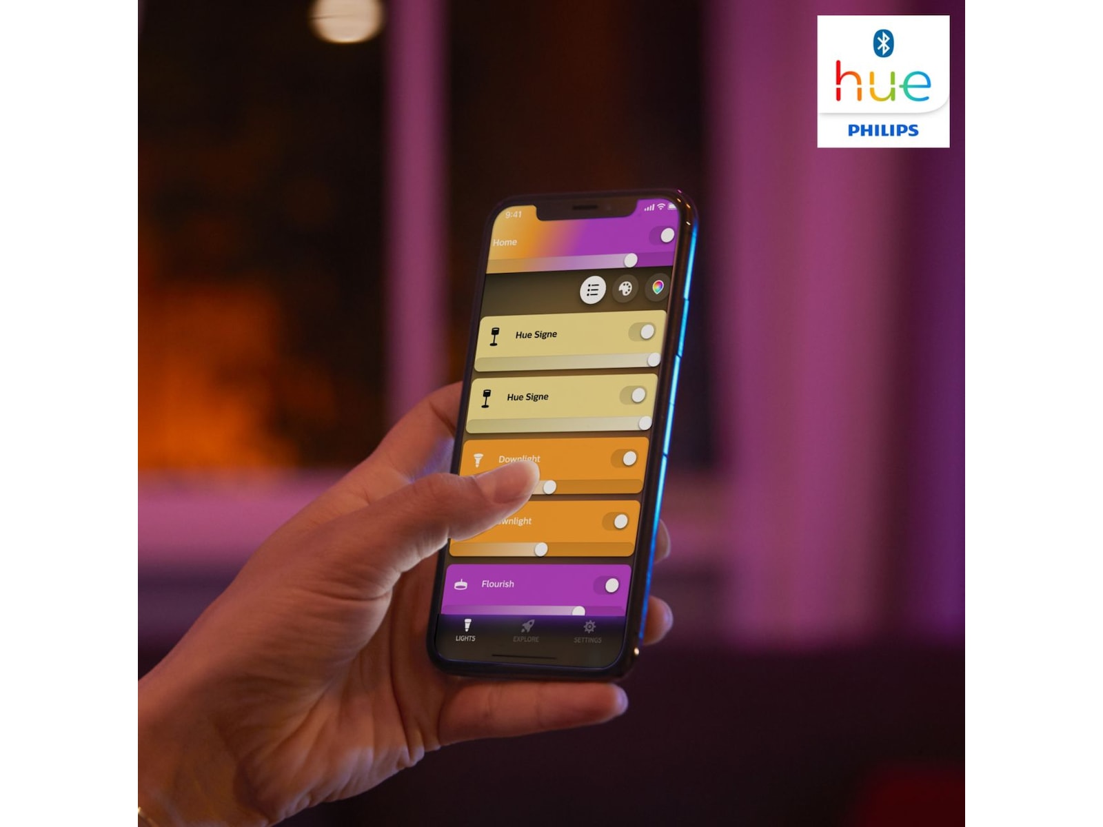 Med Hue Bluetooth-appen kan du styre Hue-smartbelysningen i et enkelt rom i hjemmet. Tilføy opptil ti intelligente lyskilder og styr alle sammen med et tastetrykk på mobilenheten din.