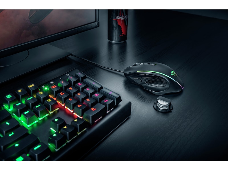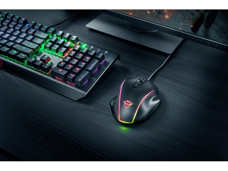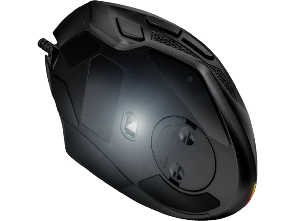 Denne musen er laget for gamere. Den har en ergonomisk design med praktisk plassering av knapper og et grovt belegg på sidene for å sikre et solid grep under de lange spilløktene. Den 1,8 meter lange flettede kabelen glir lett på skrivebordet og tåler tung bruk.