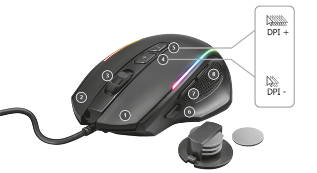 Den optiske sensoren med høy presisjon vil drive spillet ditt fremover. Juster enkelt dpi-nivået (200 til 10 000) etter ditt ønske ved hjelp av knappen for hastighetsvalg, og juster musens vekt med de 4 metallvektene på 4 gram hver. Du klikker deg til seier på null komma niks.