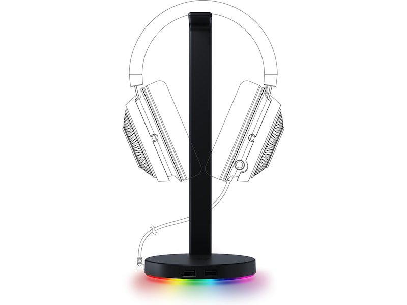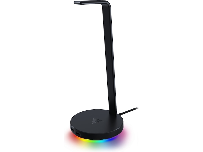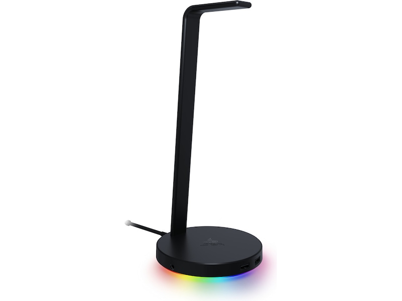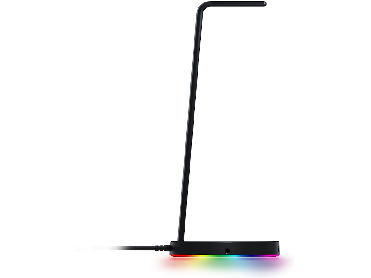 En USB-hub drevet av Razer Chroma RGB som også fungerer som et headsetstativ, med en 3,5 mm kombinasjonsport som kan støtte 7.1-surroundlyd.