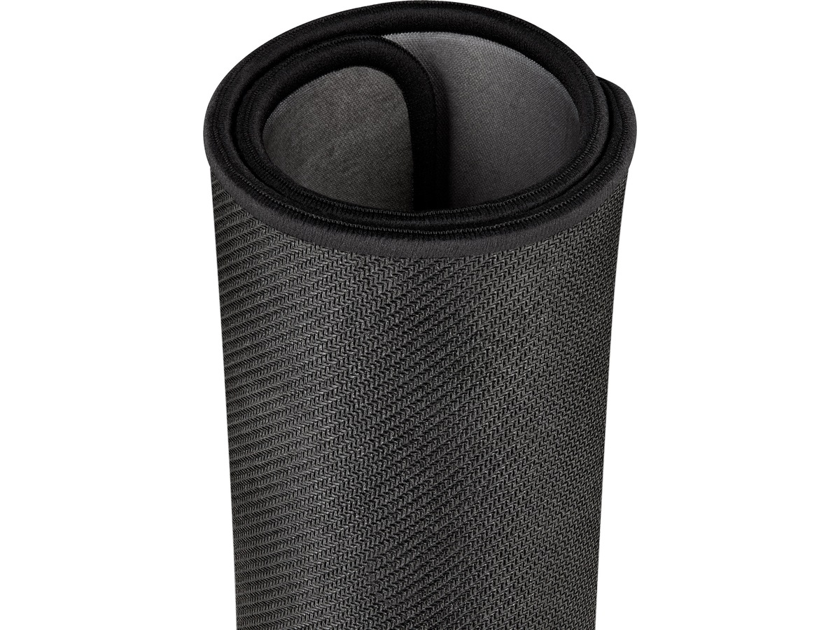 En hyperrask, mikrovevet tekstiloverflate med forbedret glid skaper en tett overflate for en raskere og jevnere glid for musen.