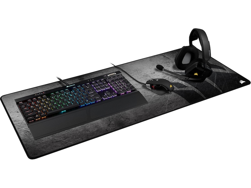 Spill trygt med CORSAIR MM350 PRO Premium sprutsikker musematte i tekstil for gaming – Extended XL, som gir plass til musen, tastaturet og mer på en massiv overflate på 930 x 400 mm med et sprutsikkert belegg