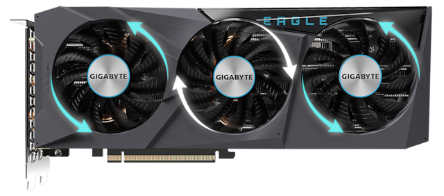 Kjølesystemet Windforce 3X har 3 x 80 mm unike bladvifter, vekslende rotasjon, 4 komposittvarmerør, store kobberplater med direkte berøring med GPU, 3D-aktiv vifte og skjermkjøling, som sammen gir en svært effektiv varmespredning. Vekslende rotasjon snur de tilstøtende viftene i motsatt retning, slik at luftstrømmens retning mellom de to viftene er den samme, noe som reduserer turbulens og øker luftstrømmens trykk. Den 3D-aktive viften sørger for semipassiv kjøling, og viftene aktiveres ikke når GPU-belastningen er lav, f.eks. ved mindre ressurskrevende gaming. Luftstrømmen deles av den trekantede bladkanten, og føres jevnt gjennom den 3D-stripede kurven på bladoverflaten. Graphene nano-smøremiddel kan forlenge levetiden til glidelagerviften med 2,1 ganger, nesten som levetiden til et dobbelt kulelager, og er samtidig roligere.