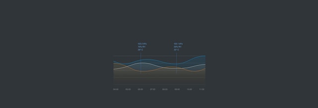 Overvåker temperatur, fuktighet og lufttrykk i sanntid.