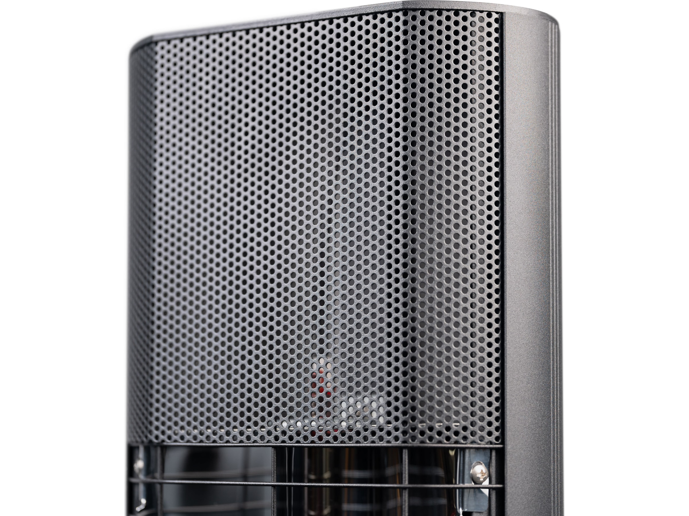 Dette elektriske varmeapparatet har et gullrør som raskt kan generere 1800 W varme. Dette elementet gjør at varmeapparatet har et minimalt varmetap, noe som gjør det perfekt for oppvarming utendørs på både vindfulle og skjermede områder.