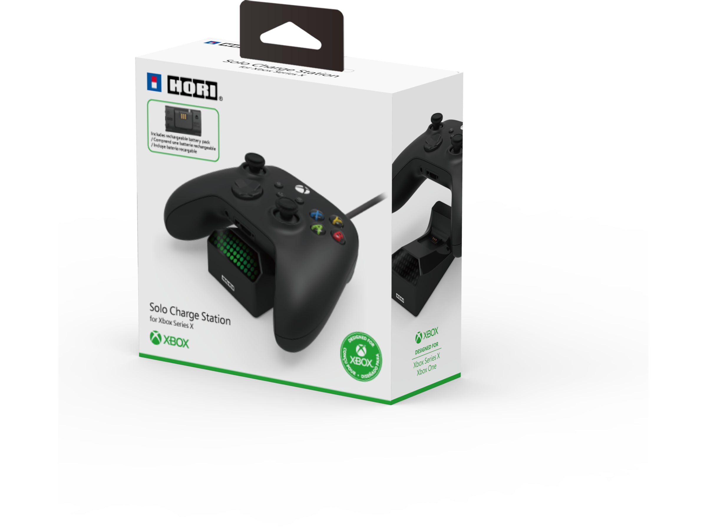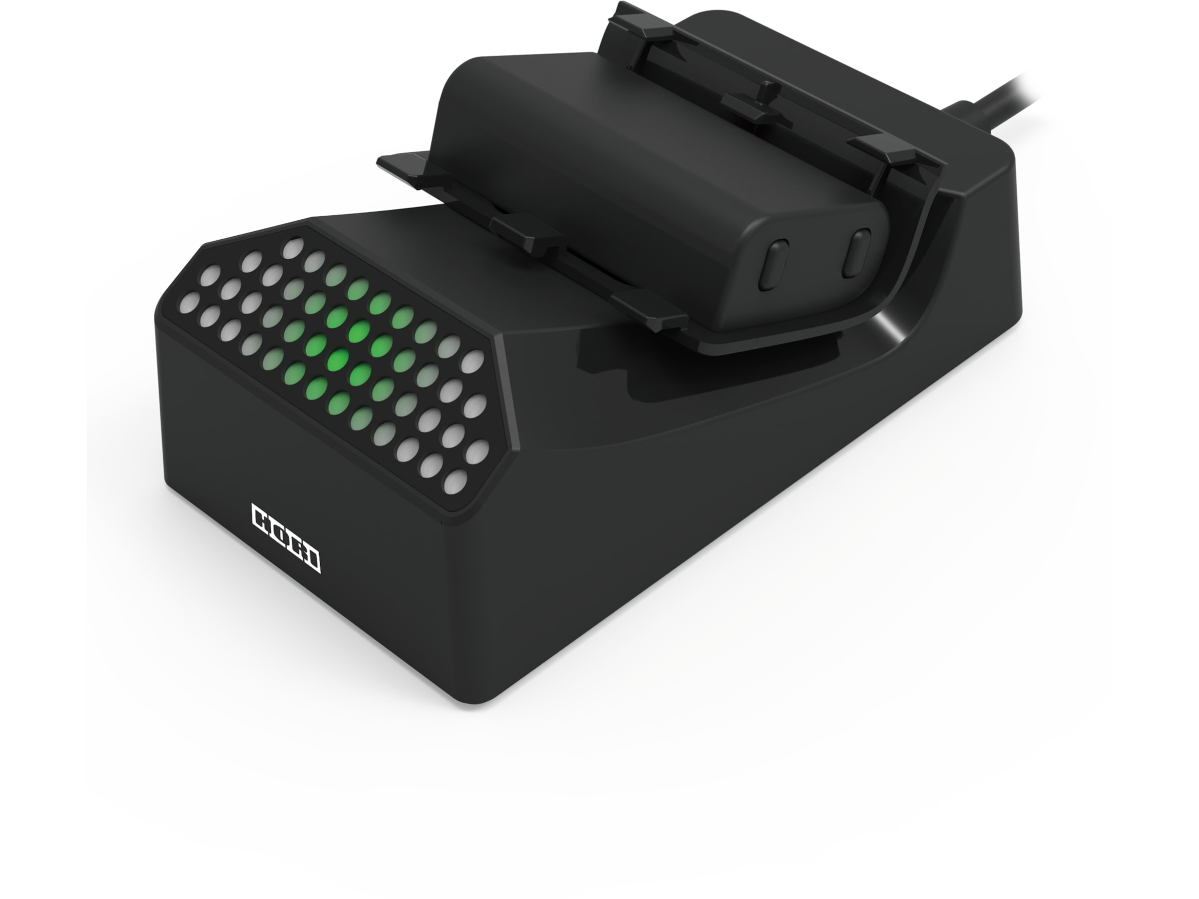 Ikke la døde batterier holde deg tilbake! Lad kontrollere og/eller batteripakker med HORI Solo-ladestasjonen designet for Xbox Series X|S. Lad kontroller og batterier enkelt ved å plassere dem på laderen! Ladestasjonen kobles til konsollen via USB. Få vite ladestatusen til en kontroller eller et batteri øyeblikkelig. Innebygde lysdioder indikerer lading med rødt og en fullført lading med grønt. Inkluderer også en batteripakke og to batterideksler slik at spillerne alltid er klare til å spille. Offisielt lisensiert av Microsoft.