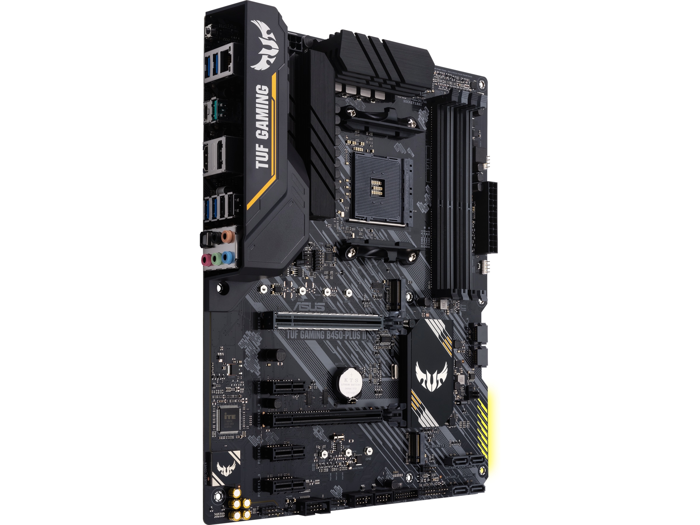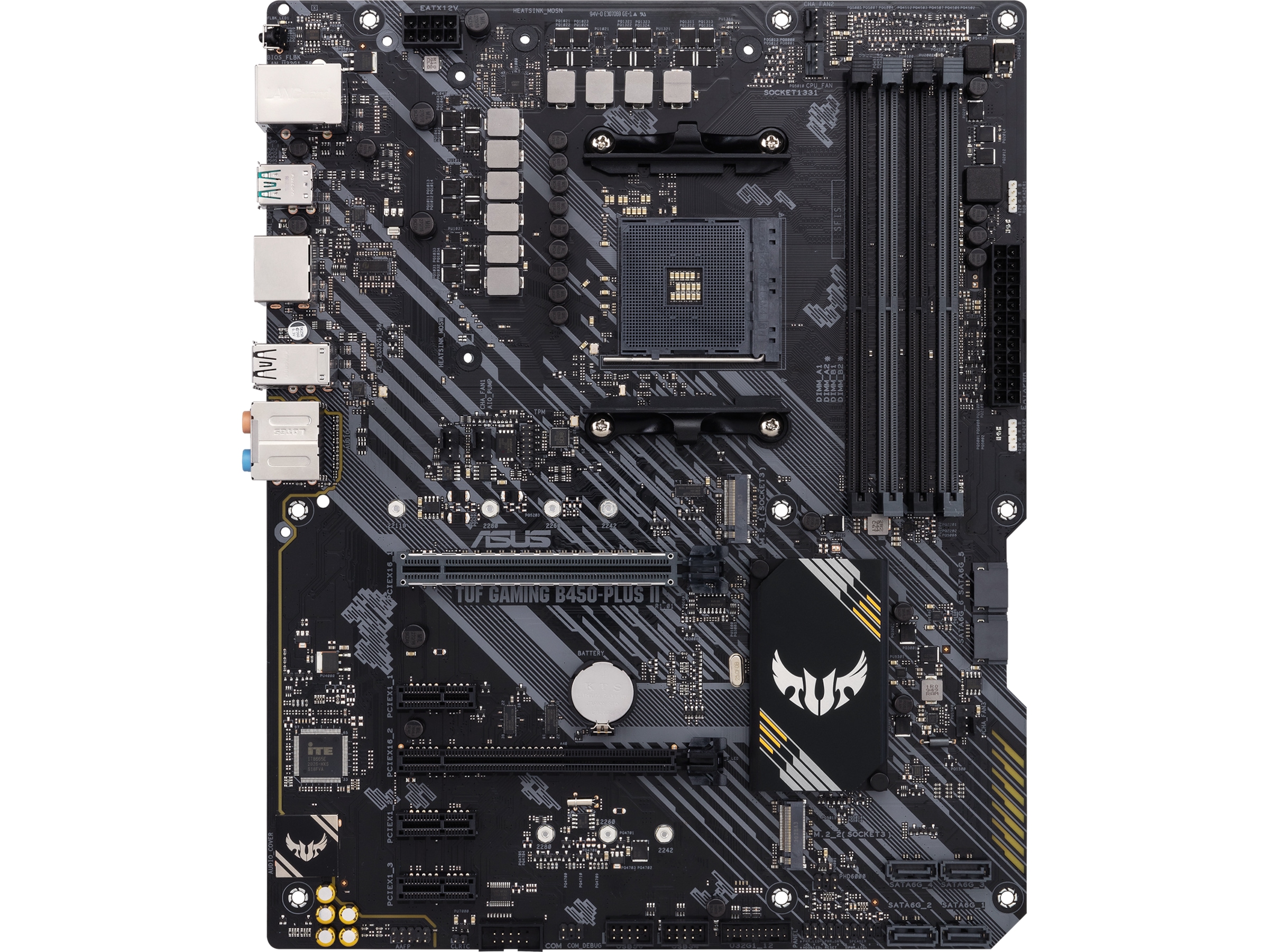 TUF Gaming B450-PLUS II gir en komplett, høytytende gamingpakke med en lang rekke funksjoner for å forbedre opplevelsen, inkludert hyperrask nettverk for jevnere online-gaming, perfekt lyd med posisjonssignaler for FPS-gaming og innebygd RGB-belysning som synkroniseres med tilkoblet tilbehør for å skape en personlig spillatmosfære.