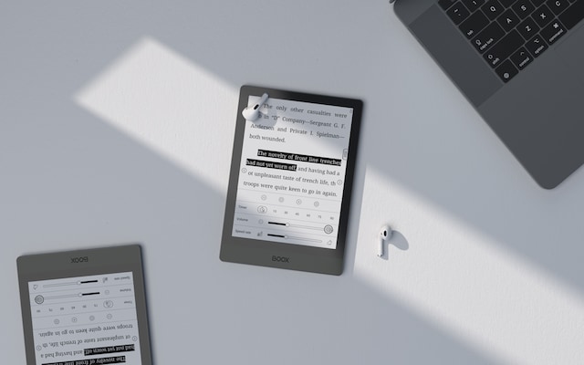 BOOX-programvaren lar brukeren åpne filer i forskjellige tekst- og grafikkformater. Når du leser, kan du endre skriftstil og størrelse, sideoppsett, sette inn bokmerker, legge til dine egne skrifttyper og zoome inn i dokumenter slik du ønsker.