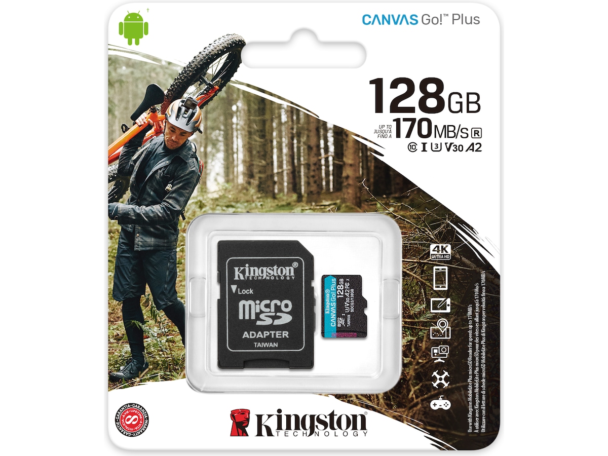 Kingstons Canvas Go! Plus microSD for eventyrere som alltid er på farten og jakter på det perfekte øyeblikket å fange opp. Med suverene overføringshastigheter på opptil 170 MB/s vil Canvas Go! Plus microSD-kortet få fart på arbeidsflyten og effektiviteten din, slik at du får mer tid til å ta med deg kreativiteten din på det neste eventyret. Med U3- og V30-hastighet kan du ta opp imponerende 4K Ultra-HD-videoer uten å bekymre deg for langsomme hastigheter og tapte rammer, eller ta bilder med rask handling som er sømløse og konsistente. Canvas Go! Plus microSD støtter A2 Application Performance Class for å få fart på arbeidsflyten din med raskere appytelse på smarttelefoner og nettbrett. En valgfri SD-adapter gir ekstra allsidighet for bruk med SD-kompatible enheter. Se verden som ditt lerret og ta med deg kreativiteten og inspirasjonen din på farten med Canvas Go! Plus microSD.