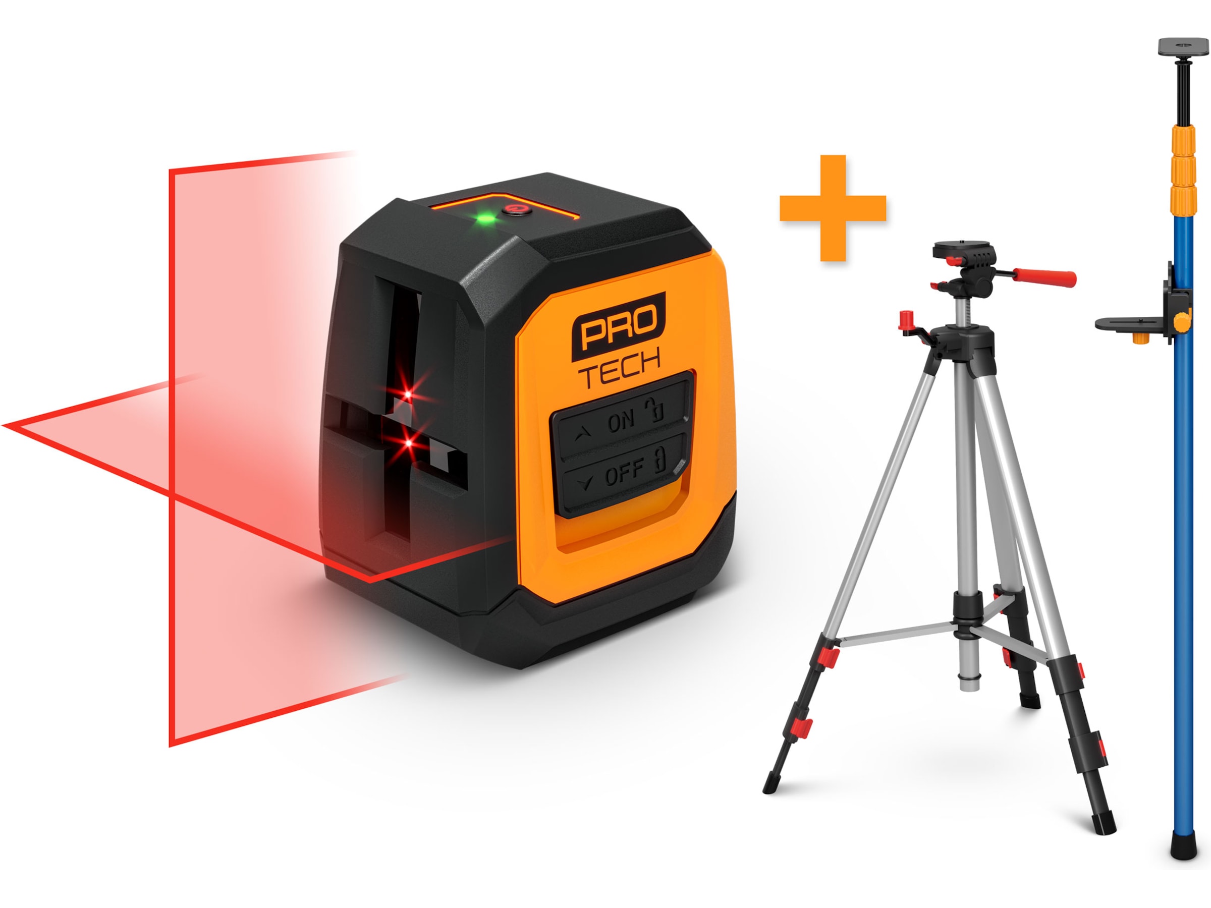 Med én enkelt bryter vises vertikale og horisontale linjer samtidig, noe som sparer deg for problemer med konvensjonell horisontal justering. Dersom du ønsker det, er det også mulig å vise kun vertikale eller horisontale linjer. Protech Cross Laser er enkel å bruke og garanterer høy presisjon – ideelt for å justere arbeid, byggeprosjekter og boliginnredning.