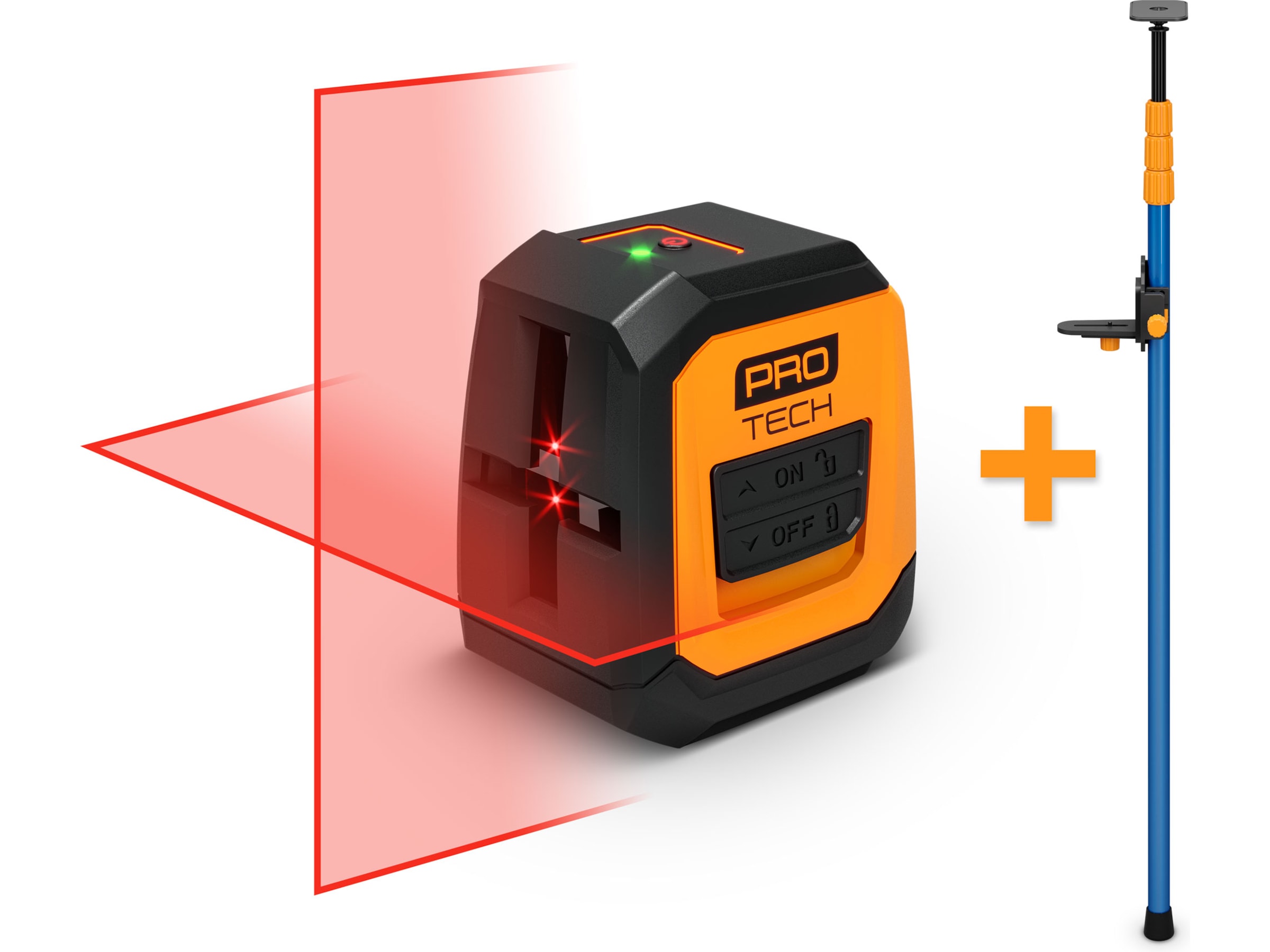 Med én enkelt bryter vises vertikale og horisontale linjer samtidig, noe som sparer deg for problemer med konvensjonell horisontal justering. Dersom du ønsker det, er det også mulig å vise kun vertikale eller horisontale linjer. Protech Cross Laser er enkel å bruke og garanterer høy presisjon – ideelt for å justere arbeid, byggeprosjekter og boliginnredning.