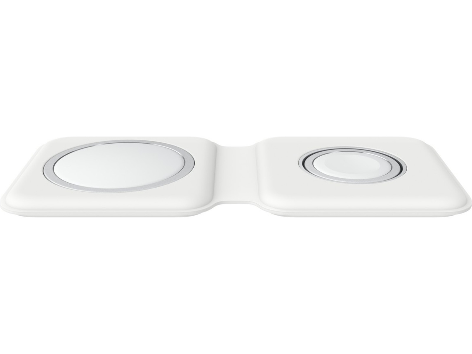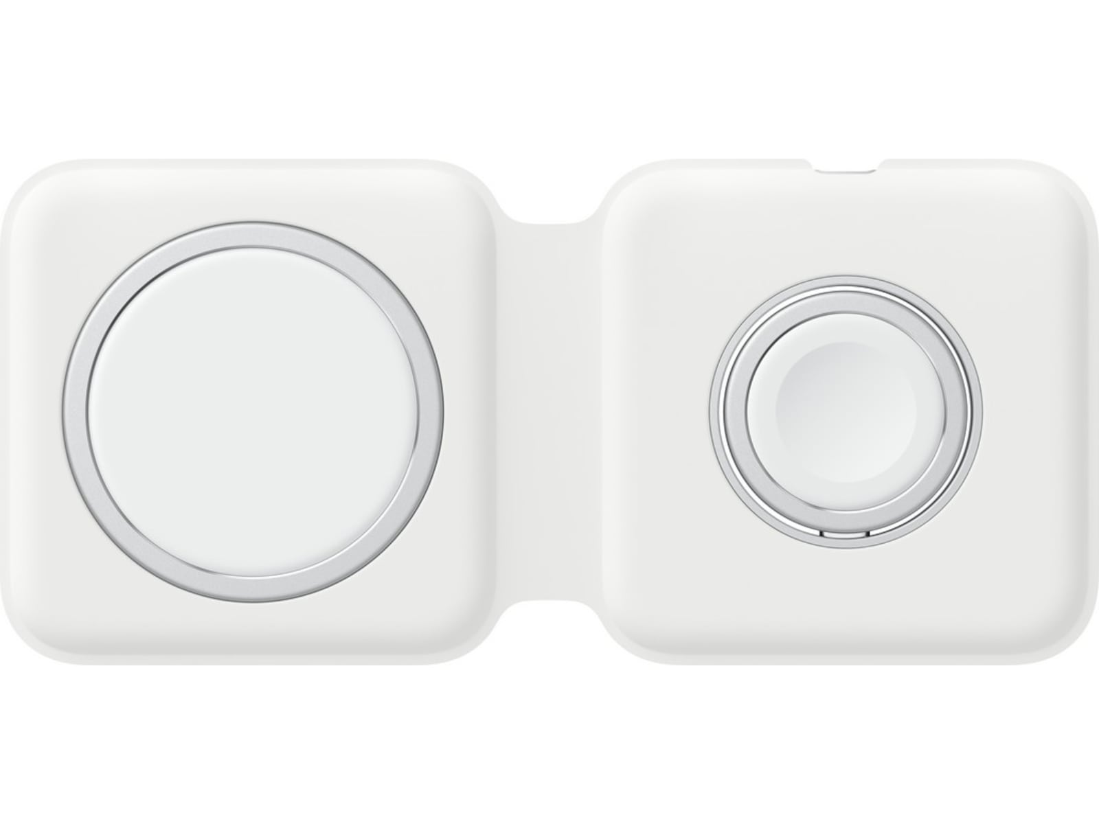 Med MagSafe Duo-laderen kan du enkelt lade kompatibel iPhone, Apple Watch, trådløst ladeetui for AirPods og andre Qi-sertifiserte enheter. Bare legg enhetene på ladeplaten, så får du rask og effektiv lading med en gang. Laderen brettes enkelt sammen, slik at du kan ta den med deg overalt.