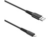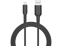Kabelen er utført i ekstra slitesterk materiale med helstøpt plugg med bøybeskyttelse som følger ned på kabelen og er testet og godkjent for mer enn 30 000 bøyninger. Kabelen kan kobles til hvilken som helst USB-port eller lader (kabeltype: USB-A), og lader alle enheter med Lightning plugg.