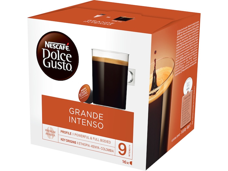 Nescafé Dolce Gusto Grande Intenso er laget av 100% arabica-bønner fra de beste kaffegårdene i verden, og gir en autentisk espressoopplevelse. Opplev den intense og kraftige smaken av Nescafé Dolce Gusto Grande Intenso i hver kopp.