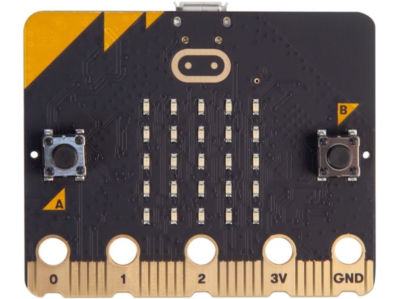 Vær oppmerksom på at du også trenger et batteri bakside med 2x AAA-batterier (ikke inkludert i singelpakken) samt en USB-kabel for å koble micro:bit til en datamaskin. (Hvis du sender kode til micro:bit fra et nettbrett eller en telefon via Bluetooth, i stedet for ved hjelp av en datamaskin, er ikke USB-kabelen nødvendig).