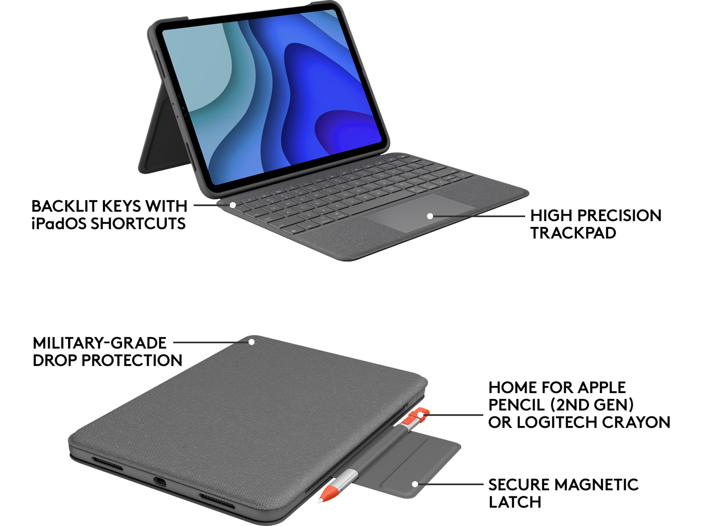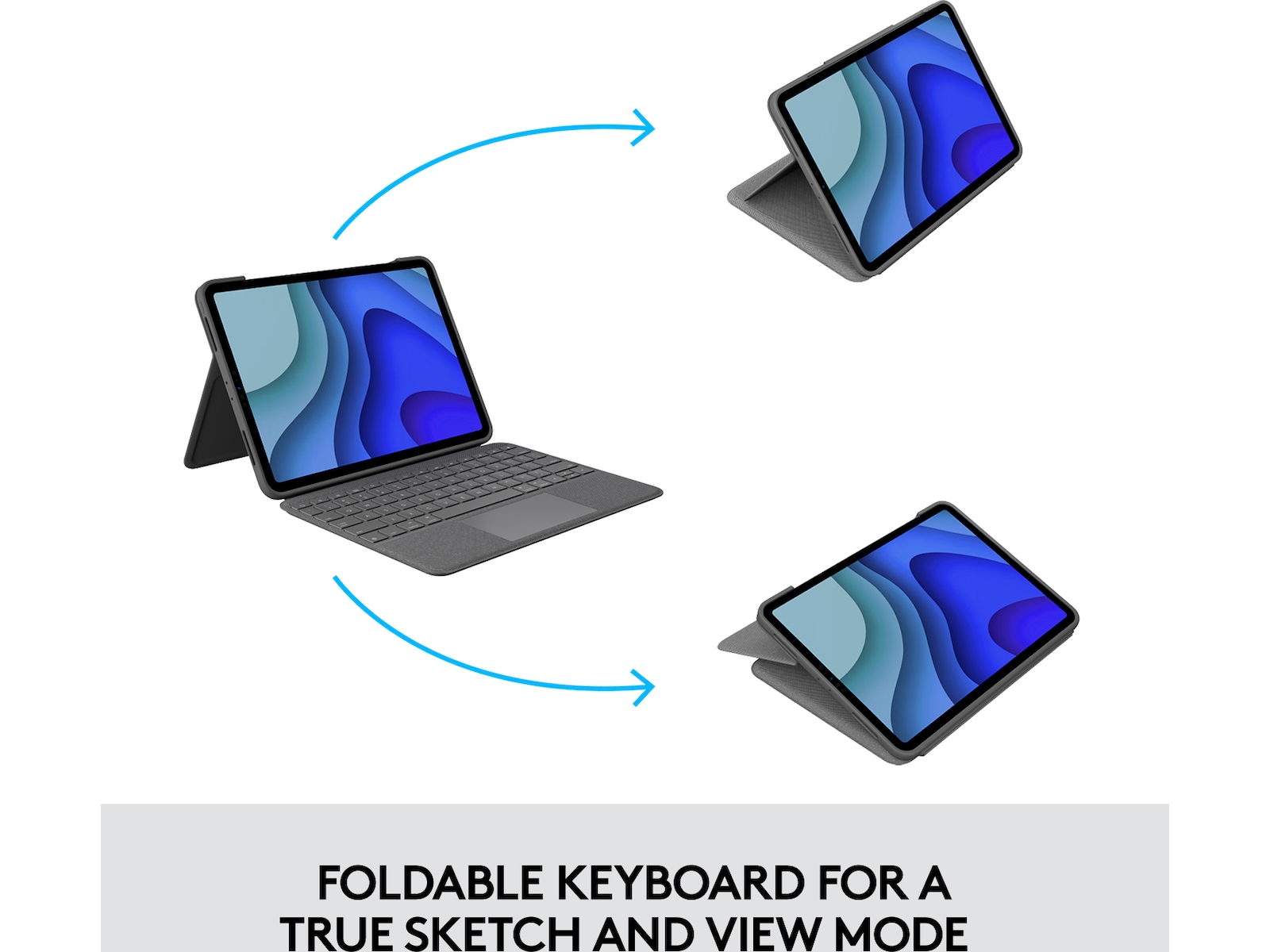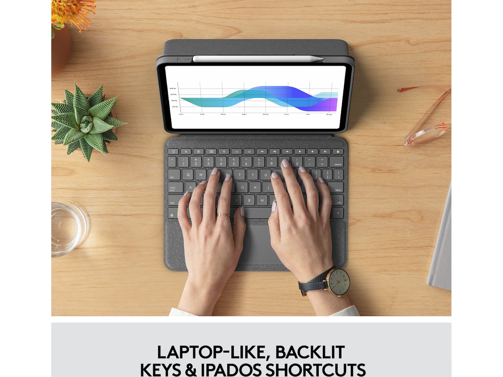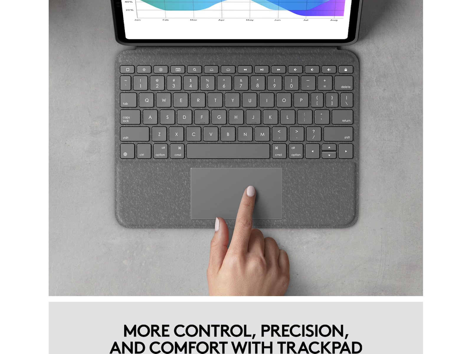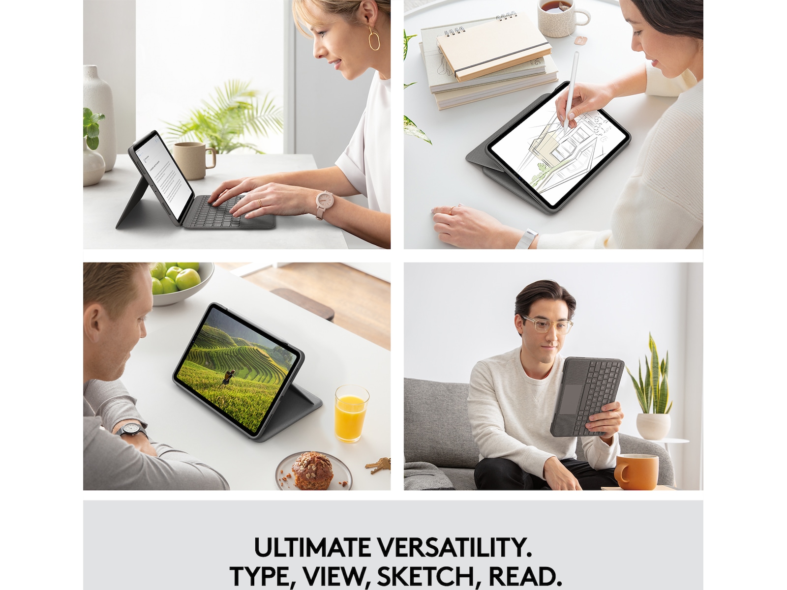 Skriv, skisser og les med Folio Touch, det utrolig allsidige tastaturetuiet med styreplate for iPad Pro og iPad Air. Bruk iPaden på helt nye måter med den justerbare støtten, det brettbare tastaturet og den presise styreplaten for bedre kontroll i favorittappene dine.