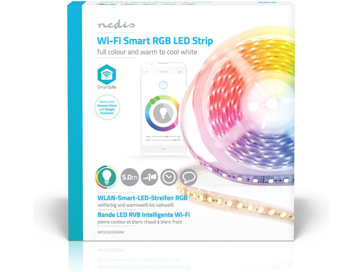 Skap stemning i alle rom med denne smarte LED-listen. Kontroller den i applikasjonen Nedis SmartLife, angi tidsplaner og automatiske oppgaver, eller bruk dine favoritt-talestyringer til å kontrollere lysstyrken og fargen på LED-listen. Den kan kobles direkte til Wi-Fi-nettverket, slik at du ikke trenger noe separat tilkoblingspunkt.