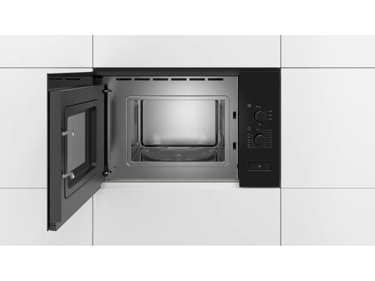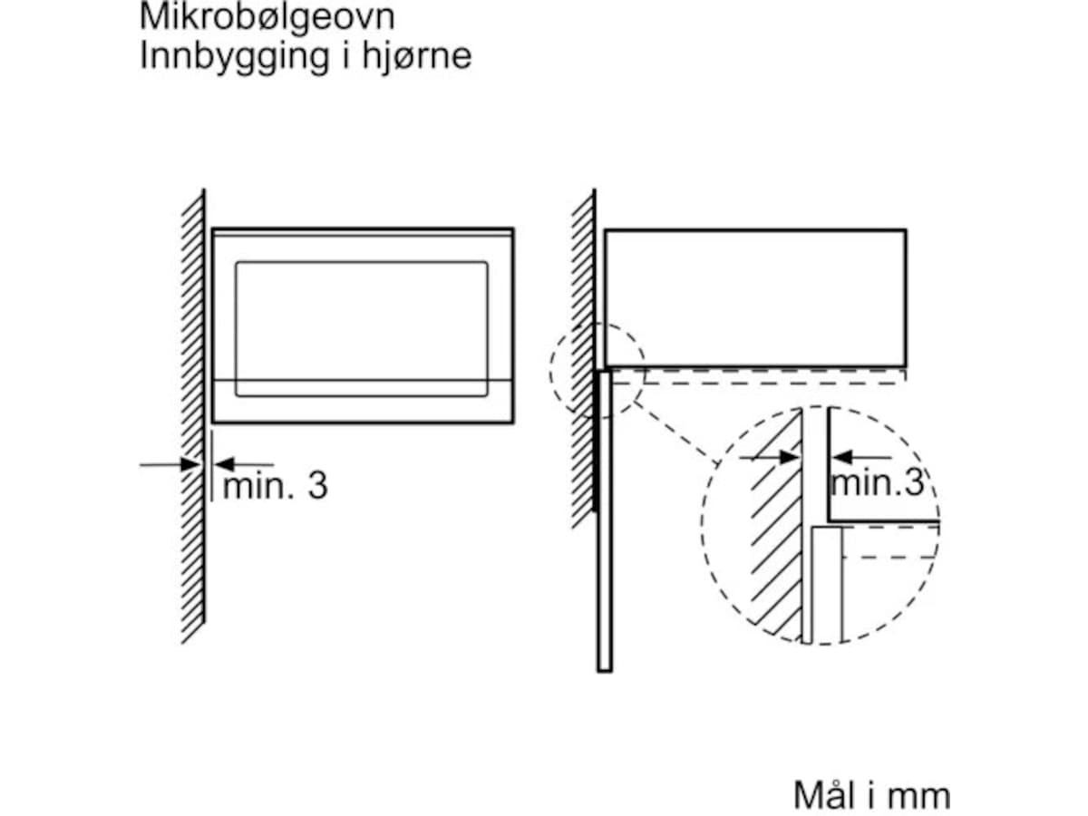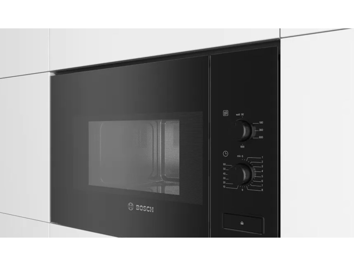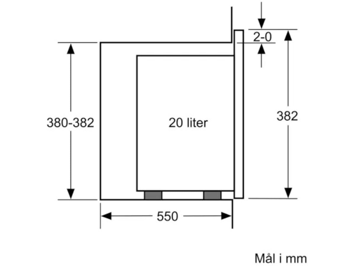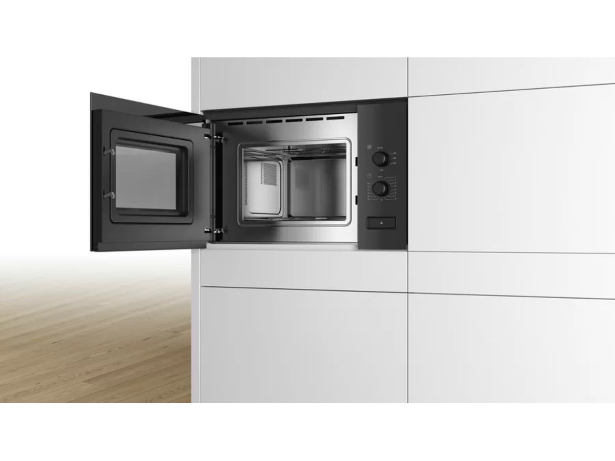 Bosch Mikrobølgeovn BFL520MB0 Mikrobølgeovn til integrering i en 38cm nisje. Mikrobølgen tiner, varmer opp og tilbereder mat raskt og med deilige resultater. Produktdetaljer Funksjoner Ovnsrom: 20 l Maks. effekt: 800 W; 5 effektnivåer: 90 W, 180 W, 360 W, 600 W, 800 W Design Ovnsom i Rustfritt stål Dørhengsling: venstre Innebygd vifte Roterende glasstallerken 25.5 cm i diameter dreiebryter Åpningsknapp Komfort Spesielt enkel og problemfri betjening Innvendig belysning Miljø og Sikkerhet Øvrige sikkerhetsfunksjoner: sikkerhetsutkobling, Dørkontaktbryter