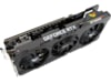 Undersiden av kortet har også fått en rekke forbedringer. Det meste av undersiden er dekket av en beskyttende metallplate som er utstyrt med en stor lufteventil. Lufteventilen sikrer at varm luft blir sendt mot utblåsingsviftene i kabinettet, i stedet for å bli resirkulert tilbake til GPU-ens kjøler. I/O-braketten er laget av rustfritt stål for å beskytte porter og for gi et sikkert feste. Og en praktisk plassert Dual BIOS-bryter lar deg gjøre tilpasninger av kortets ytelsesprofil uten behov for programvare.
