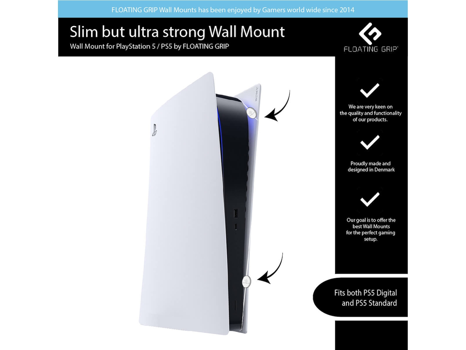 Vis frem, oppbevar eller skjul din PlayStation 5 (PS5) på veggen i FLOATING GRIP-veggfestet