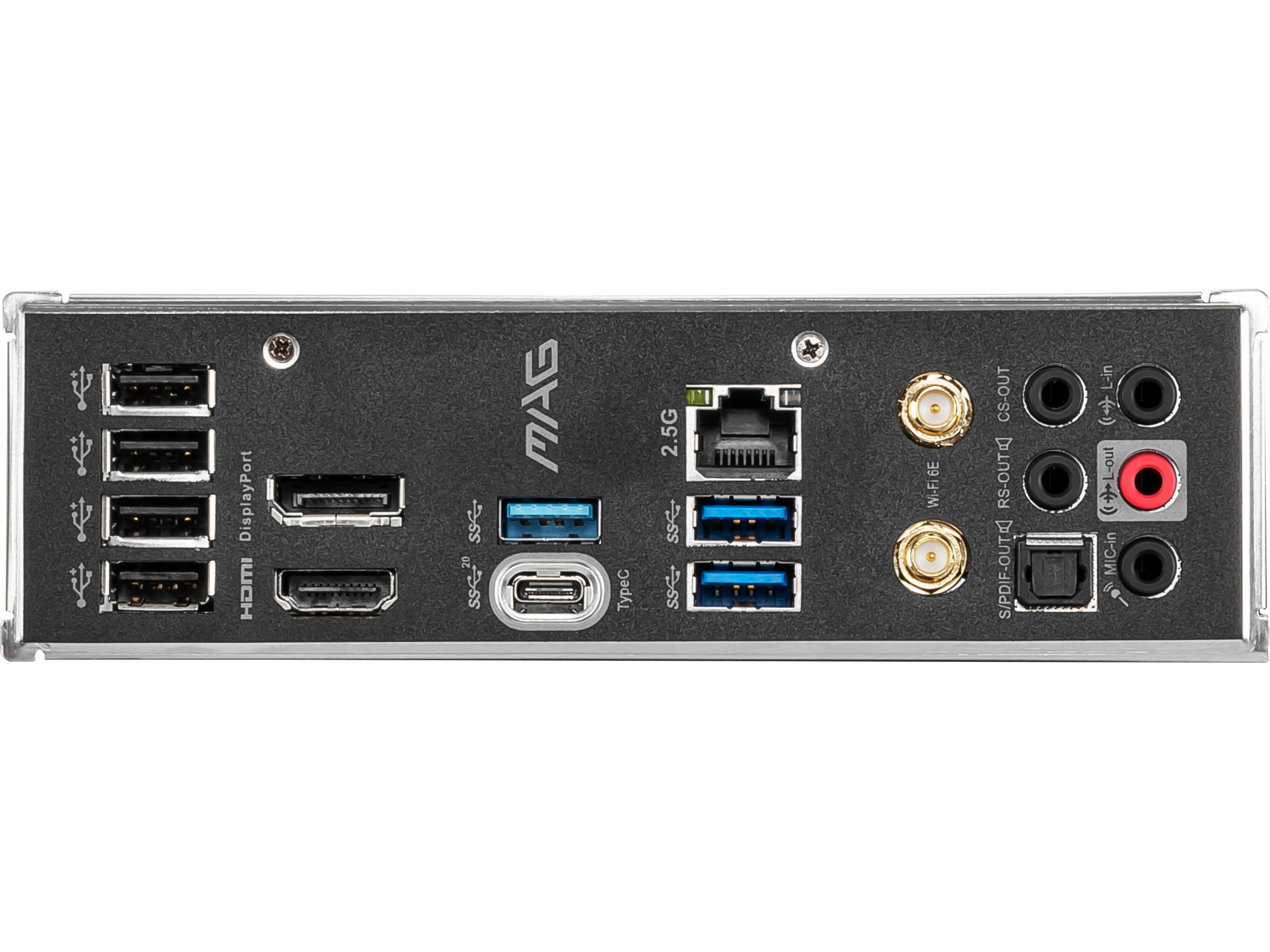 1 x USB-C Gen2x2, 4 x USB 2.0, 1 x lydutlinje (bakre) - minijakk, 1 x lydutlinje (senter/subbasshøyttaler) - minijakk, 1 x lydinnlinje - minijakk, 3 x USB 3.2 Gen 1, 1 x mikrofon - minijakk, 1 x DisplayPort, 1 x TOSLINK, 1 x lydutlinje - minijakk, 1 x HDMI