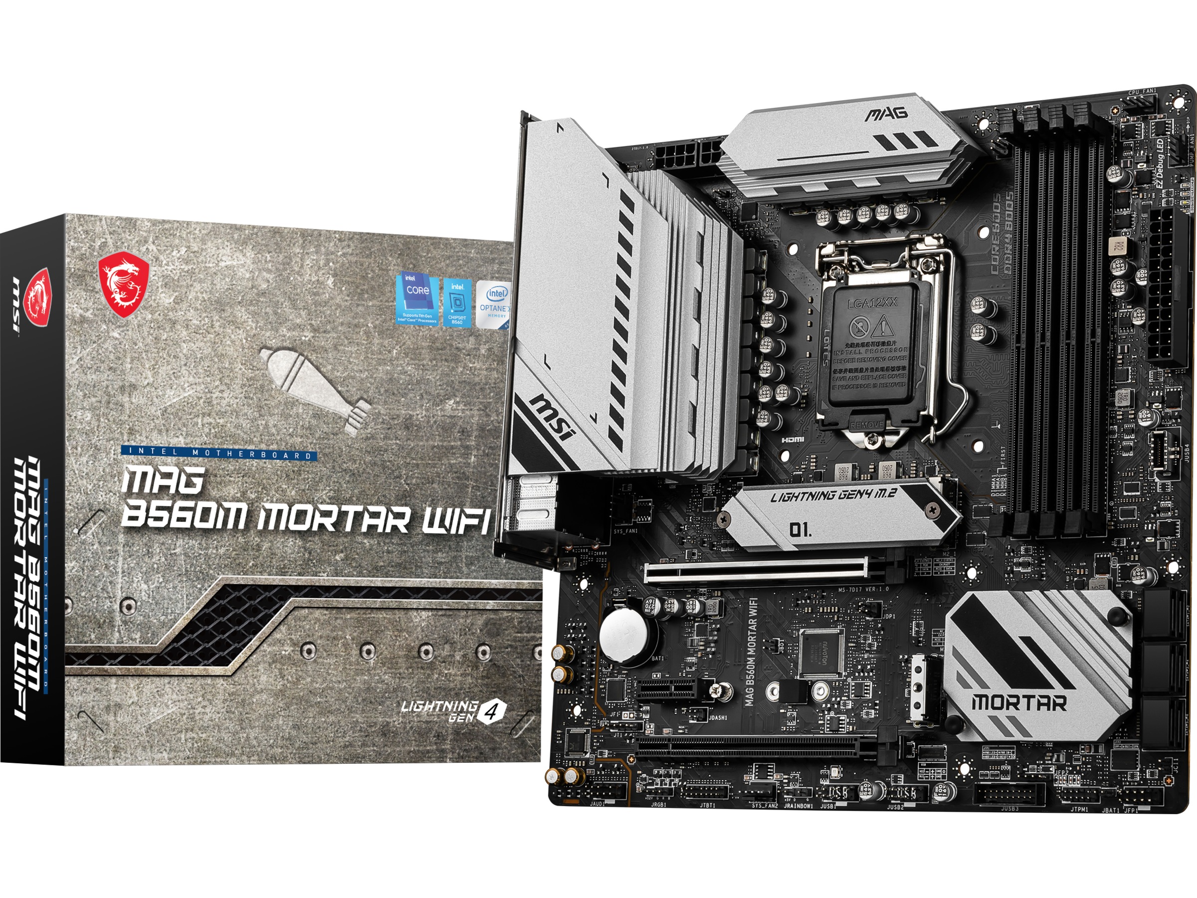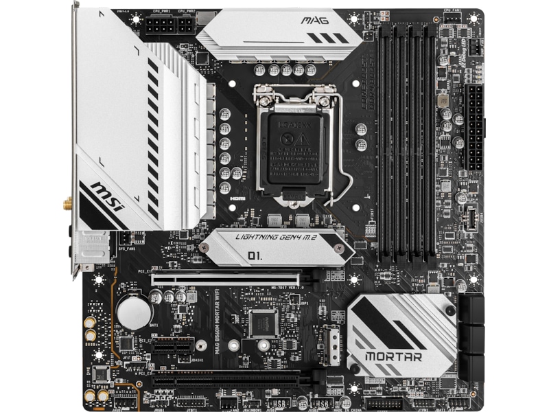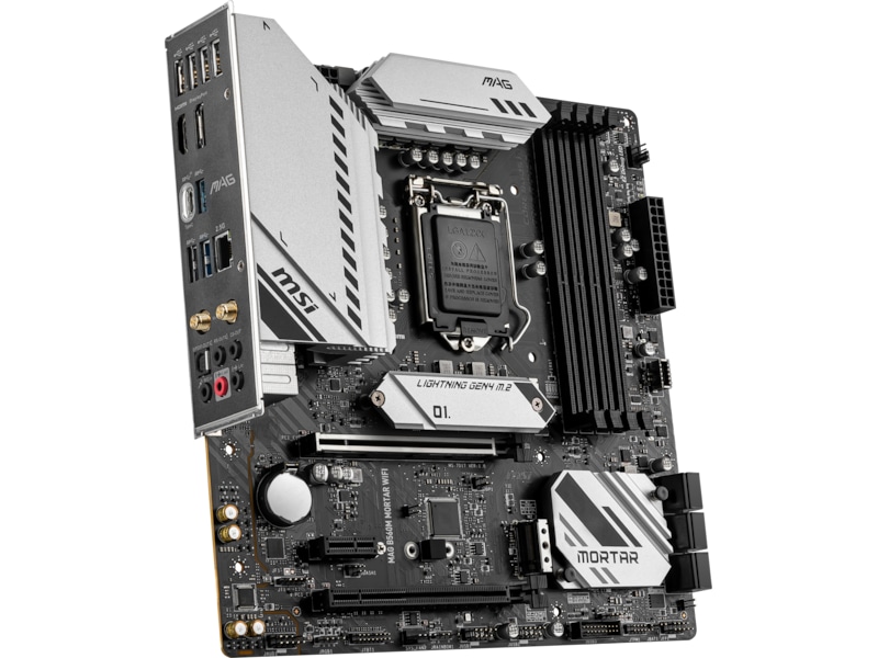 1 x PCIe 3.0 x1, 1 x CPU, 4 x 288-pins DIMM, 1 x PCIe 4.0 x16 (PCIe 4.0 x16-modus (11.-generasjons Intel CPU-er), PCIe 3.0 x16-modus (10.-generasjons Intel CPU-er)), 1 x PCIe 3.0 x16 (x4-modus)