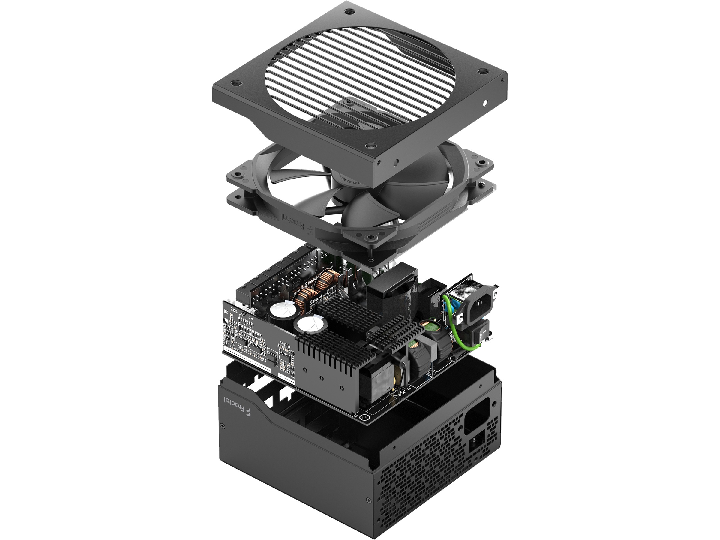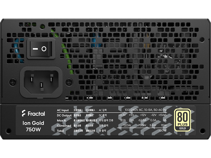 Ion Gold er utstyrt med en stor temperaturstyrt Fractal Design Dynamic 140 mm-vifte, skreddersydd for bruk med strømforsyningsenheter, med en usedvanlig lav minimumshastighet.