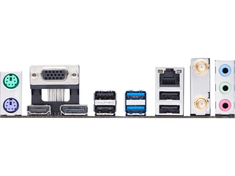 1 x PS/2-tastatur, 1 x VGA, 1 x lydutlinje - minijakk, 4 x USB 2.0, 1 x mikrofon - minijakk, 1 x PS/2-mus, 1 x HDMI, 1 x lydinnlinje - minijakk, 2 x USB 3.2 Gen 1, 1 x DisplayPort