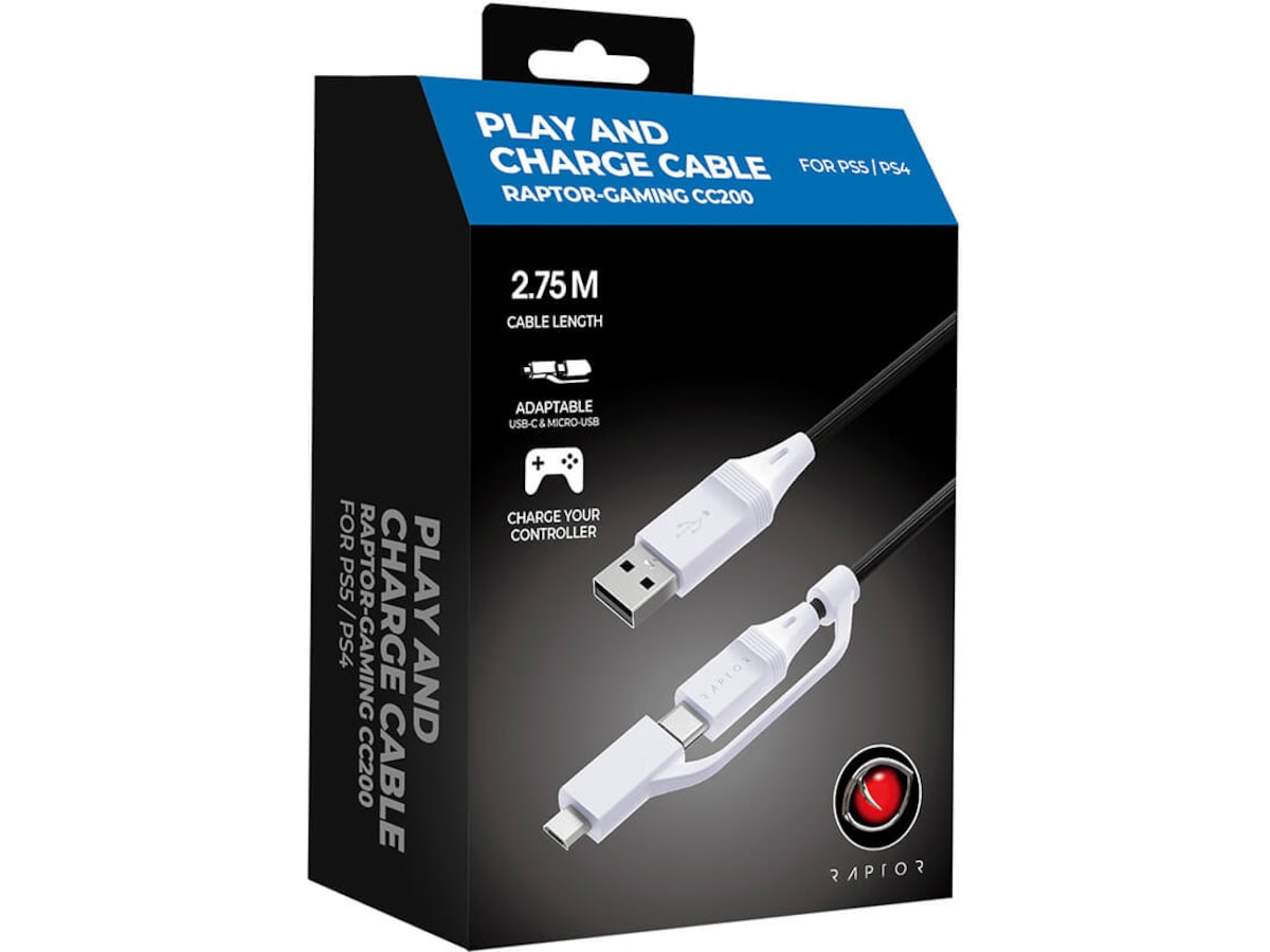 2-i-1-kabel. Bytt mellom USB-C- og Micro USB-plugger for å lade alle PS4-/PS5-kontrollere.