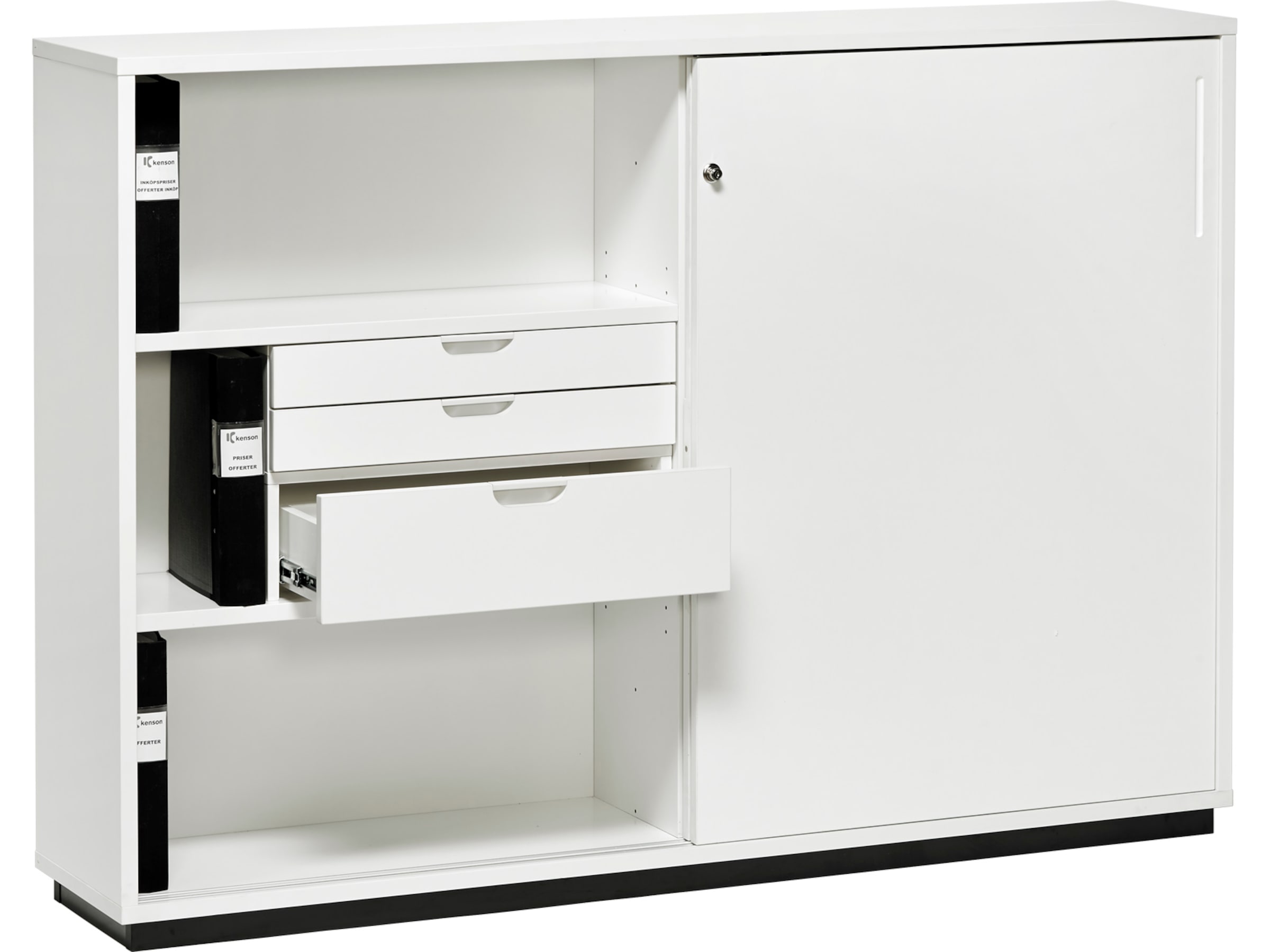 Kensons fleksible og funksjonelle kontorskap kan lett endres og ettersuppleres med våre skuffekassetter. På en smart måte kan innredningen i skapet gjøres om, slik det passer deg best. Du kan sette inn skuffer eller klesstang. Skuffekassetten W-D156 består av en stor skuff, og er godt egnet til f.eks. kontorrekvisita.