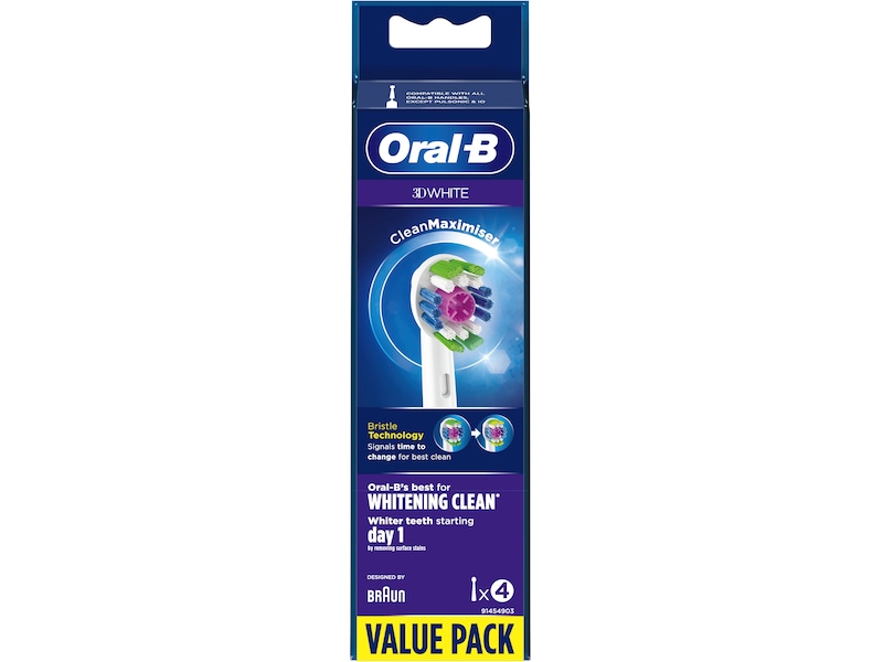 Oral-B 3D White Tannbørstehode Med CleanMaximiser-Teknologi, Pakke Med 4 Stk.