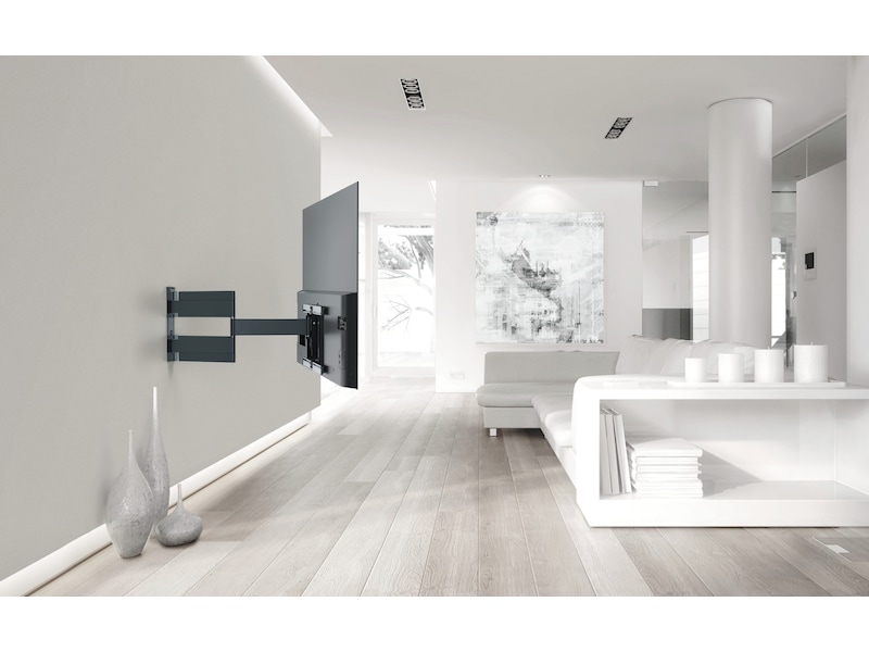 THIN med full bevegelse gir deg også de mest fleksible mulighetene for svinging, takket være de svært lange armene, med mye smidighet og eleganse. Du bruker THIN-festet intuitivt, og takket være det smidige hengselet reagerer TV-veggfestet lett på dine korreksjoner.