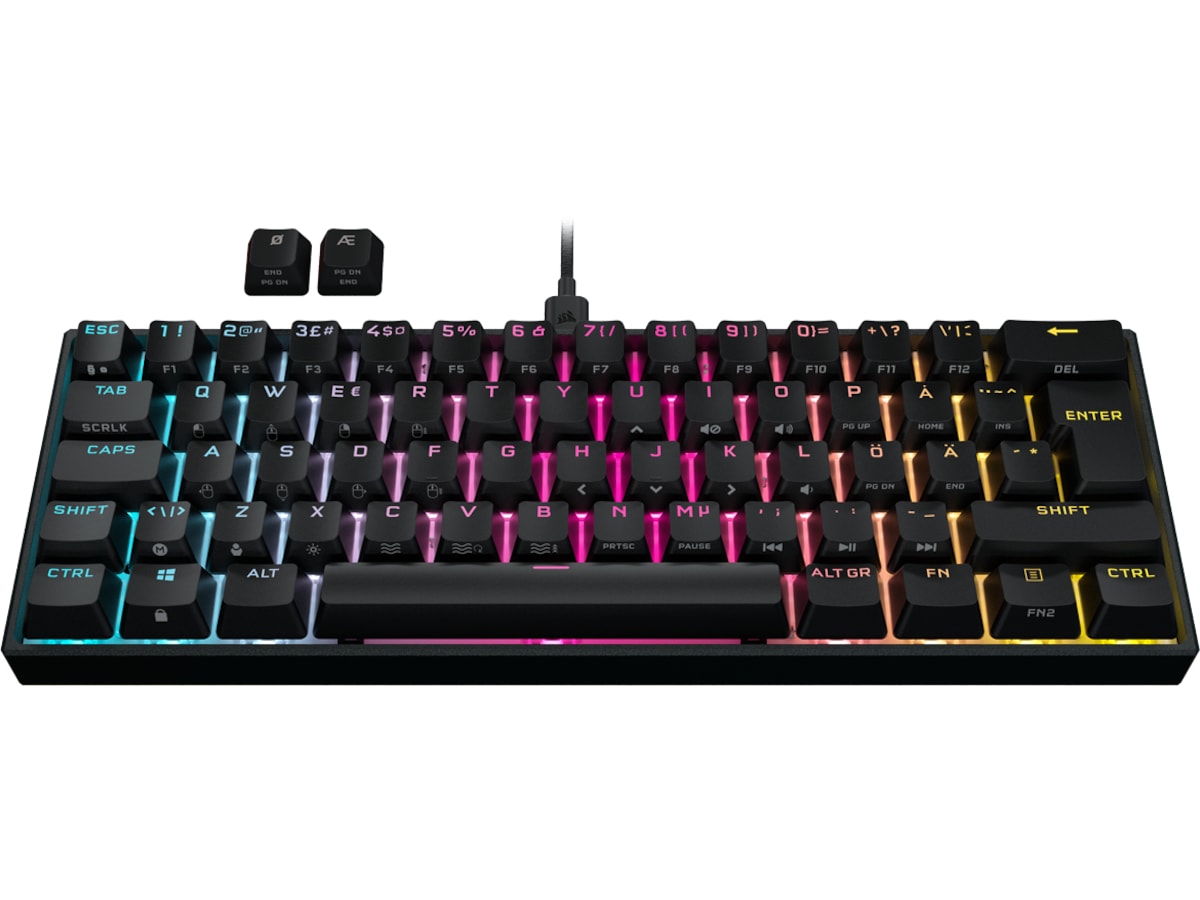 • Tilpass tastaturet ditt med dynamisk RGB-bakgrunnsbelysning som kan tilpasses per tast samt en valgfri medfølgende lysende mellomromstast og CORSAIR-logotast, i tillegg til en standardlayout for den nederste tasteraden, slik at du kan bytte det ut med tilpassede tastehettesett.