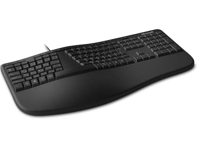 Jobb komfortabelt hele dagen. Det ergonomiske tastaturet fra Microsoft reduserer tretthet og gir en slank og sofistikert design med delt tastatur, forbedret polstret håndleddsstøtte og dedikerte hurtigtaster.