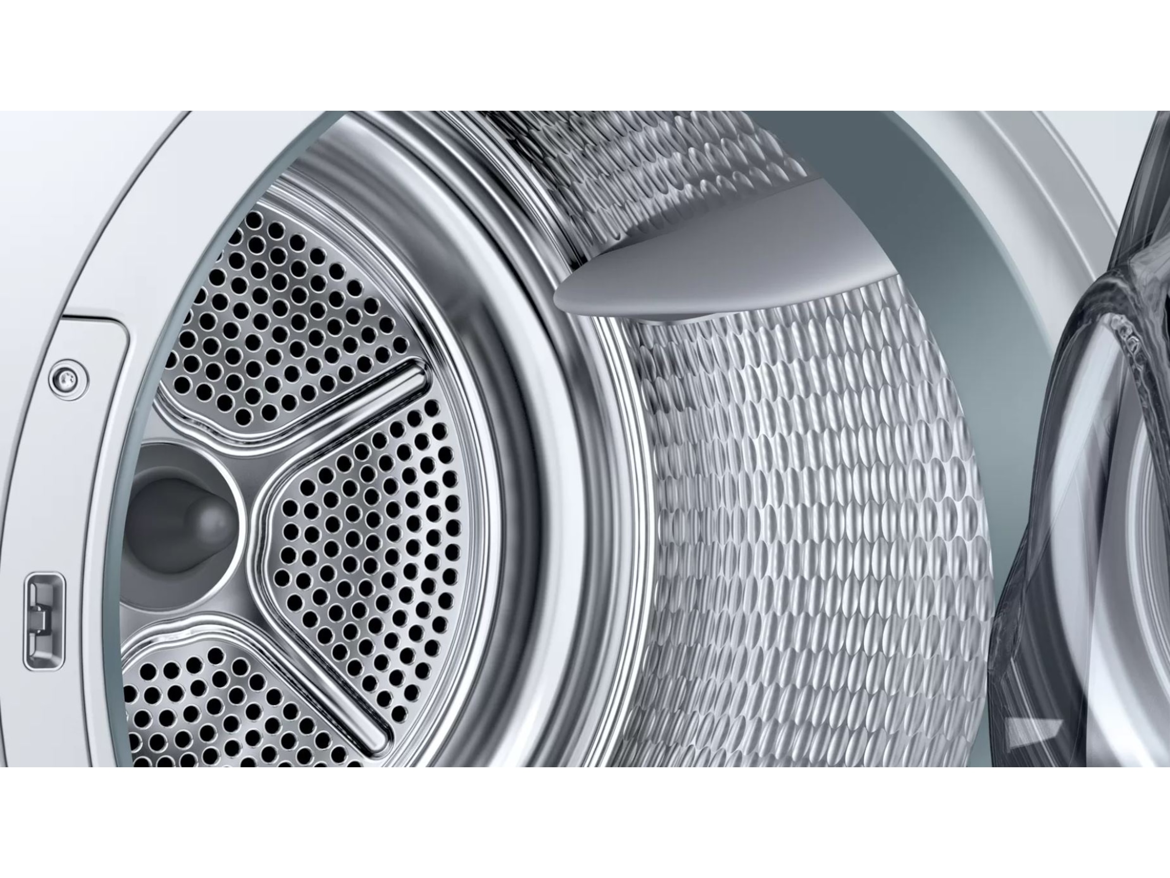 Maskinens innovative AntiVibration sideveggene er spesialdesignet for å gi mer stabilitet og redusere vibrasjonen optimalt. Den forbedrede isolasjonen regulerer også støynivået, noe som gjør Bosch-tørketromler ekstra stille.