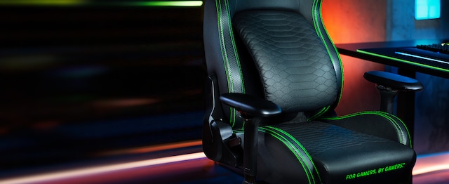 Razer Iskur Black Gamingstol med innebygd korsryggstøtte Støtte til hele korsryggen Syntetisk lær i flere lag Skumputer med høy tetthet Perfekt gamingform Razers første gamingstol som er designet for perfekt holdning i hardcore-gaming
