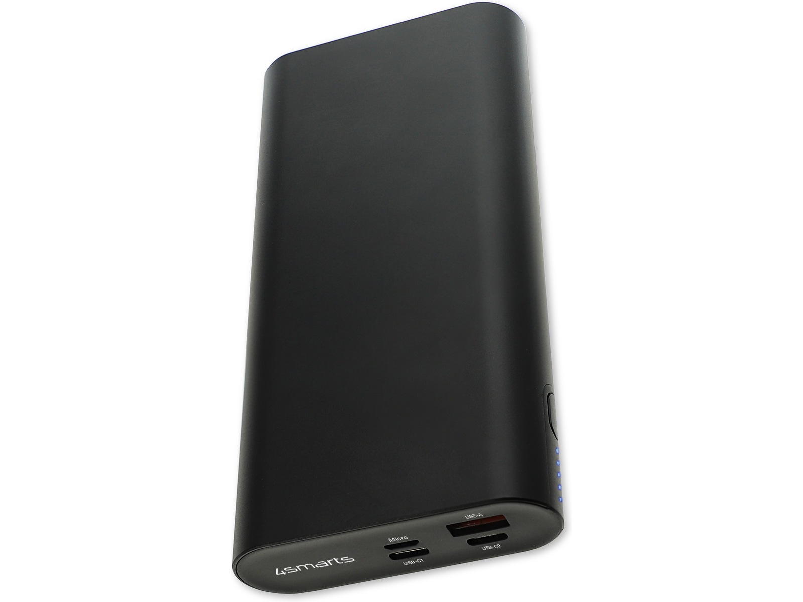 Rask: Takket være nyskapende grafenteknologi kan denne nødladeren lades på nytt i løpet av drøyt én time.* Konvensjonelle nødladere med en kapasitet på 20 000 mAh trenger ca. 6 timer for å lades opp.