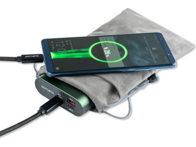 Mobil: Hvis det ikke finnes noe strømuttak tilgjengelig, forsyner denne nødladeren alle mobilenhetene dine med ny energi – perfekt for forretningsreiser.