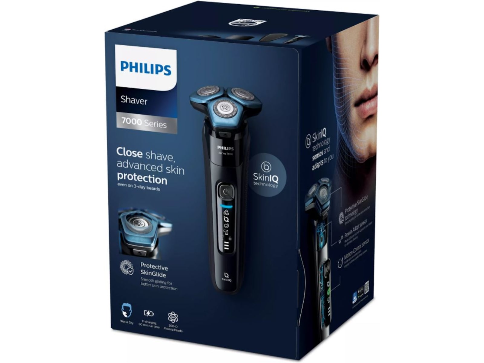 Philips 7000-serien glir lett over huden, samtidig som hvert hår klippes tett – selv på tredagers skjegg. Barbermaskinen er utstyrt med avansert SkinIQ-teknologi, og den tilpasser og veileder seg etter riktig bevegelse for å gi bedre hudbeskyttelse.