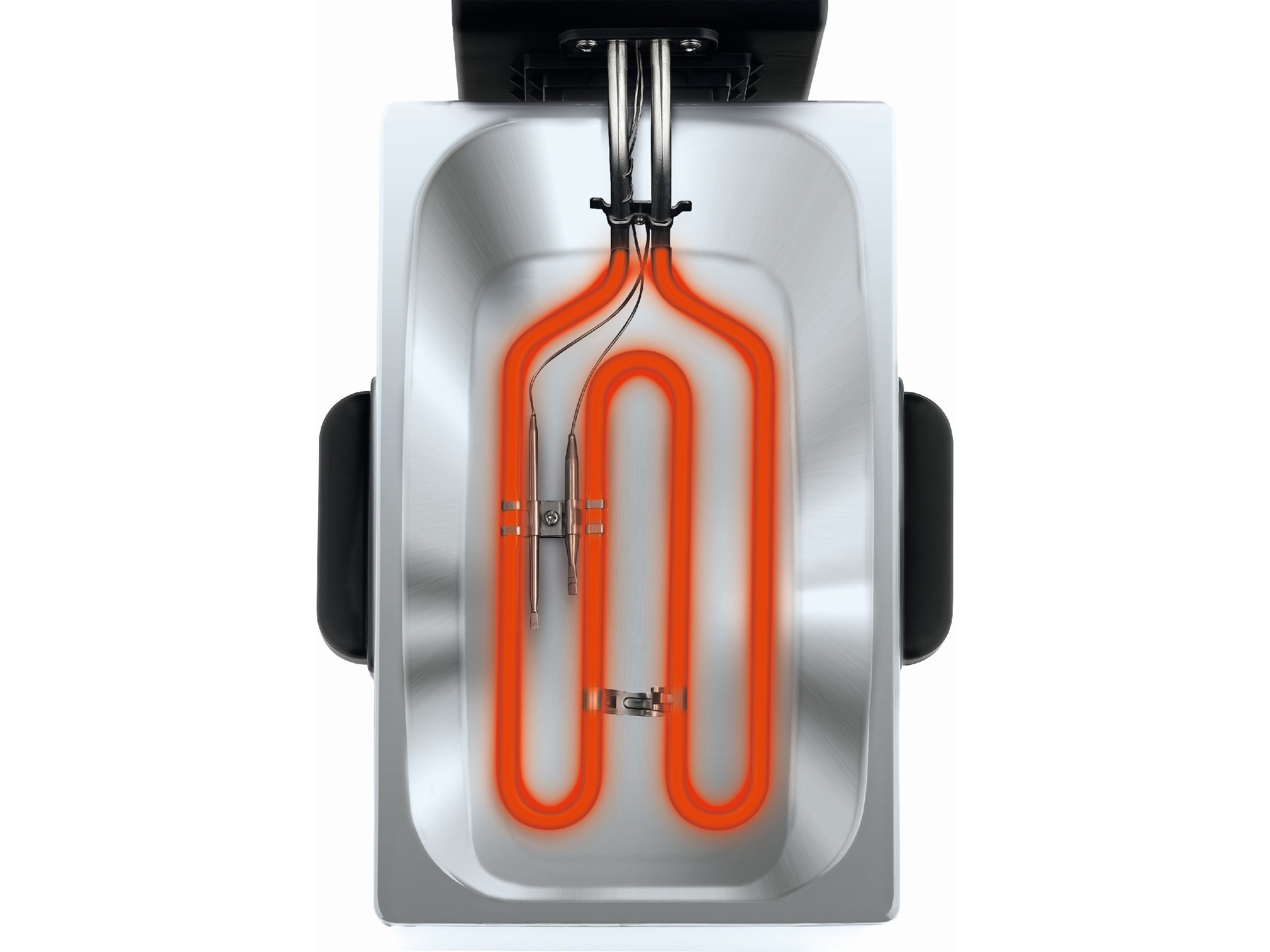 - Takket være det neddykkede varmeelementet er oppvarmingen rask, og du kan lage pommes frites raskt og enkelt.