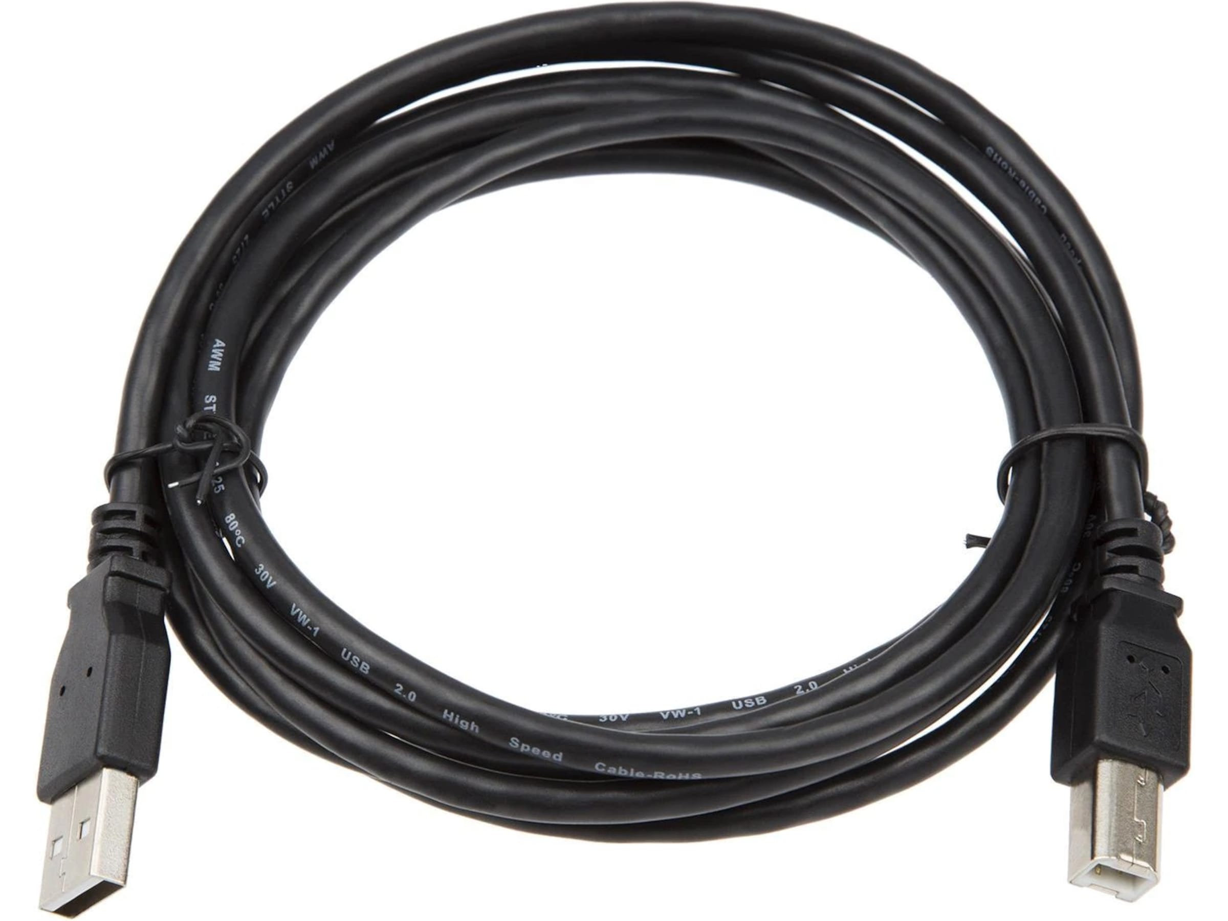 En USB-A-til-USB-B-kabel brukes for å overføre data mellom to enheter, for eksempel fra en stasjonær eller bærbar PC til en skriver, eller for å overføre bilder fra et digitalkamera til en PC, eller for å synkronisere en mobiltelefon med en PC. En USB-kabel brukes også for å lade mobiltelefoner, MP3-spillere og nettbrett.