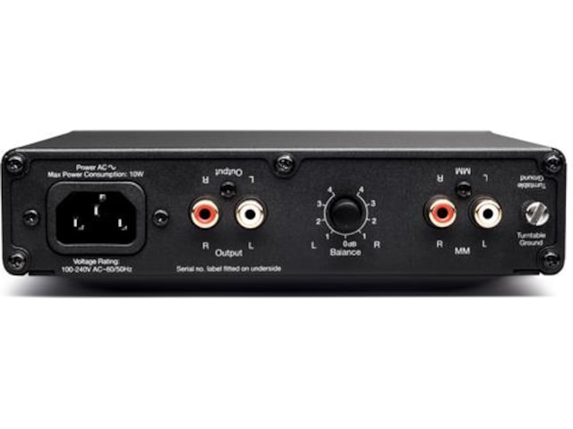 Riaa-trinn for Moving Magnet pickuper Signal/støy forhold, bedre enn: 90dB Forsterkning: 39dB THD: 0.0025% Riaa korreksjon: +/- 0.65dB (30-20.000 Hz) Dimensjoner (HxBxD): 4,8 x 17,6 x 13,2 cm