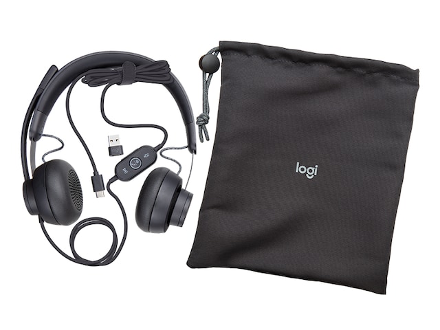 Logitech Zone Wired Noise Cancelling Headset er sertifisert for Microsoft Teams, med avansert støydempende mikrofonteknologi for åpne kontorlandskaper, USB-C med USB-A-adapter, grafitt.
