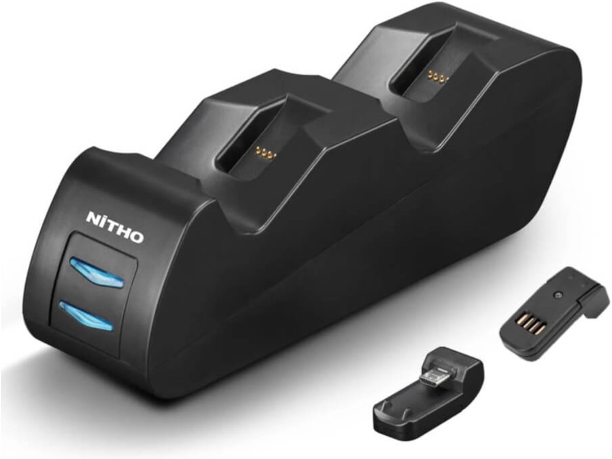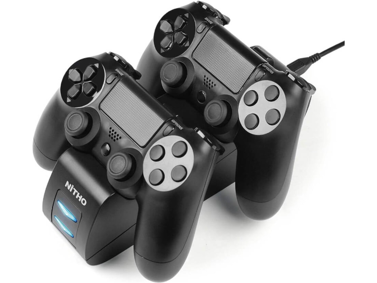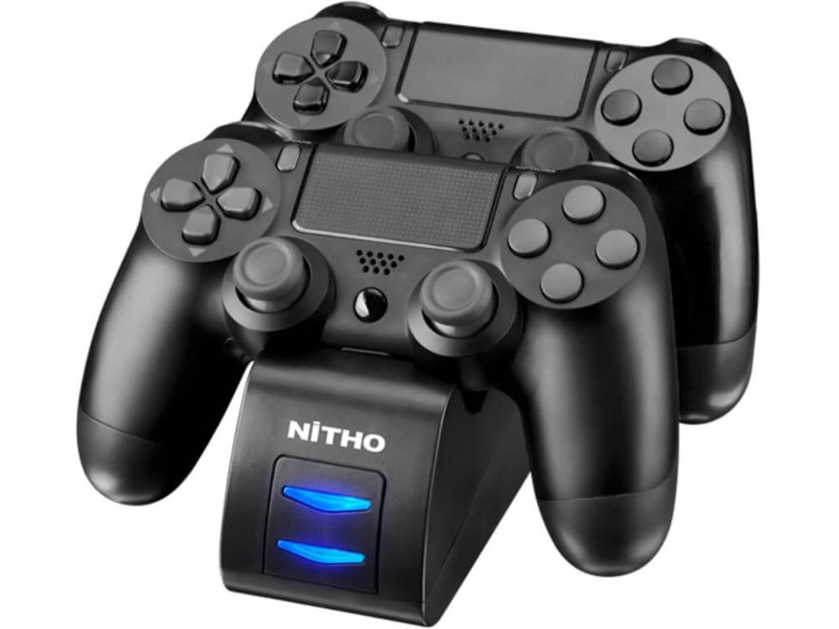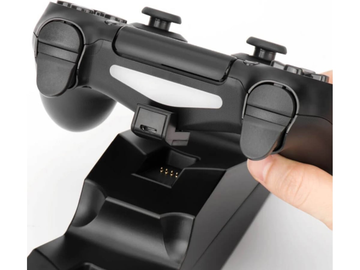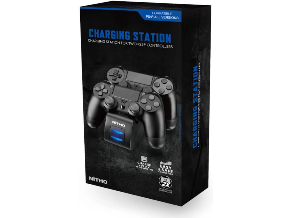 Ladestasjon for to PS4® DualShock®4-kontrollere med Easy & Safe™ pluggfrie kontakter